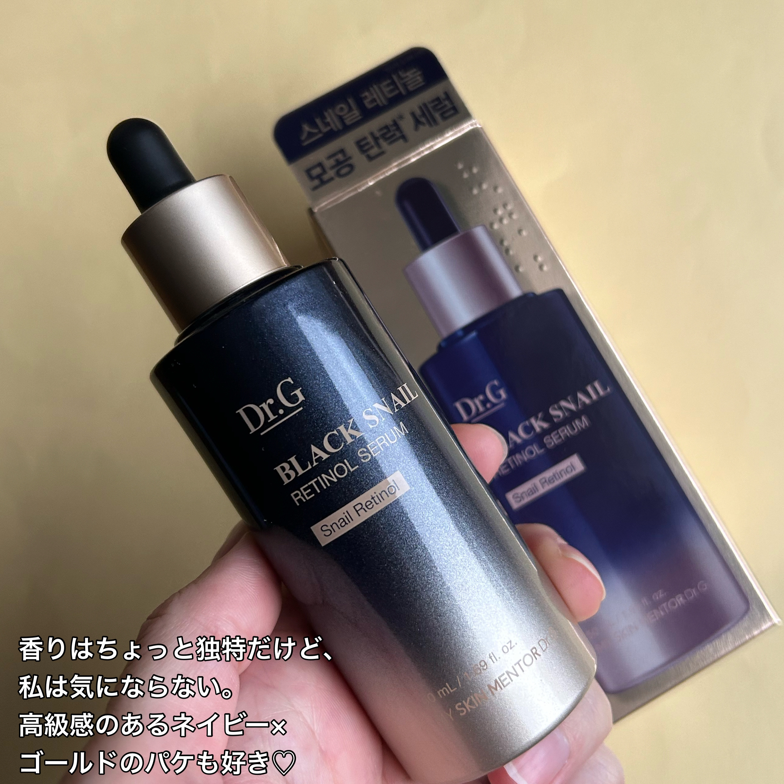 - ブラックスネイル*とレチノール*を配合した、若々しい肌印象に導く美容液です。 Dr.Gのレチノールは独自の成分である、ブラックスネイルレチノール*を使っています! 肌に高い保湿感を与え、肌のキメを整え、弾力やハリのケアを助けるだけでなく、肌の乾燥くすみをケアし、明るい印象のぷるんっとハリのある肌に導きます。 *整肌成分