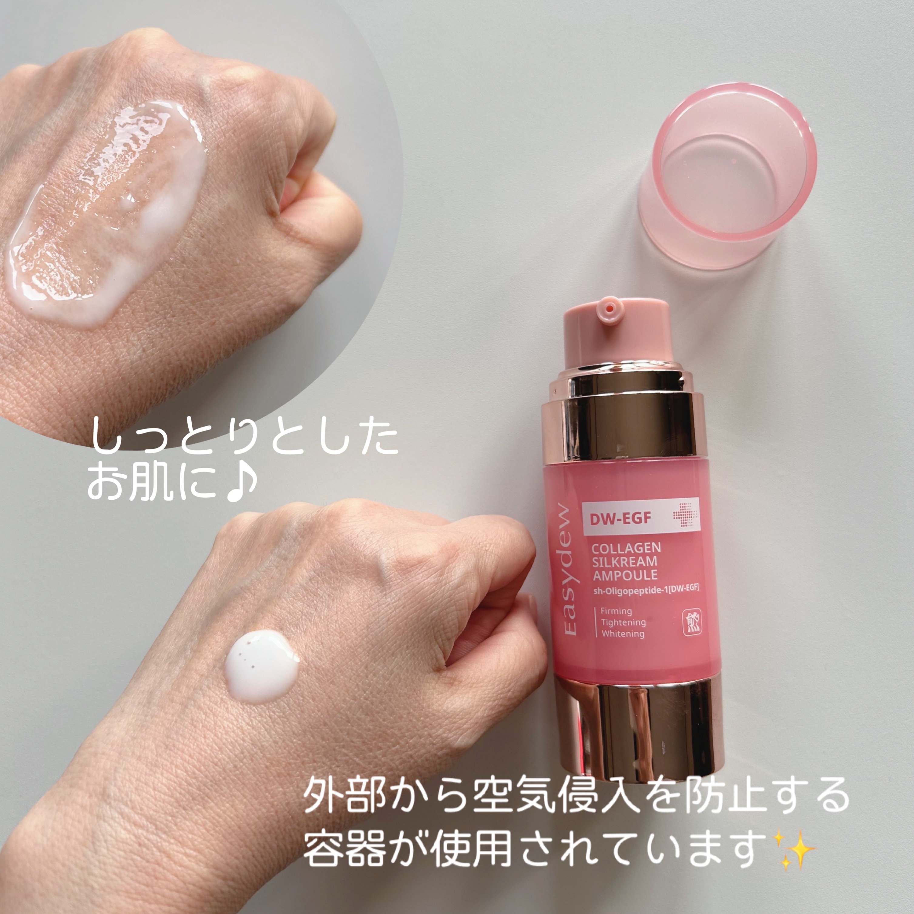 乾燥する季節にぴったりなイージーデューのエイジングケアコンビ💗 大熊製薬の独自成分「DW-EGF」がポイント🪄 傷の治癒成分99.9%の純度を誇る「EGF」を使用しているのだそう…!