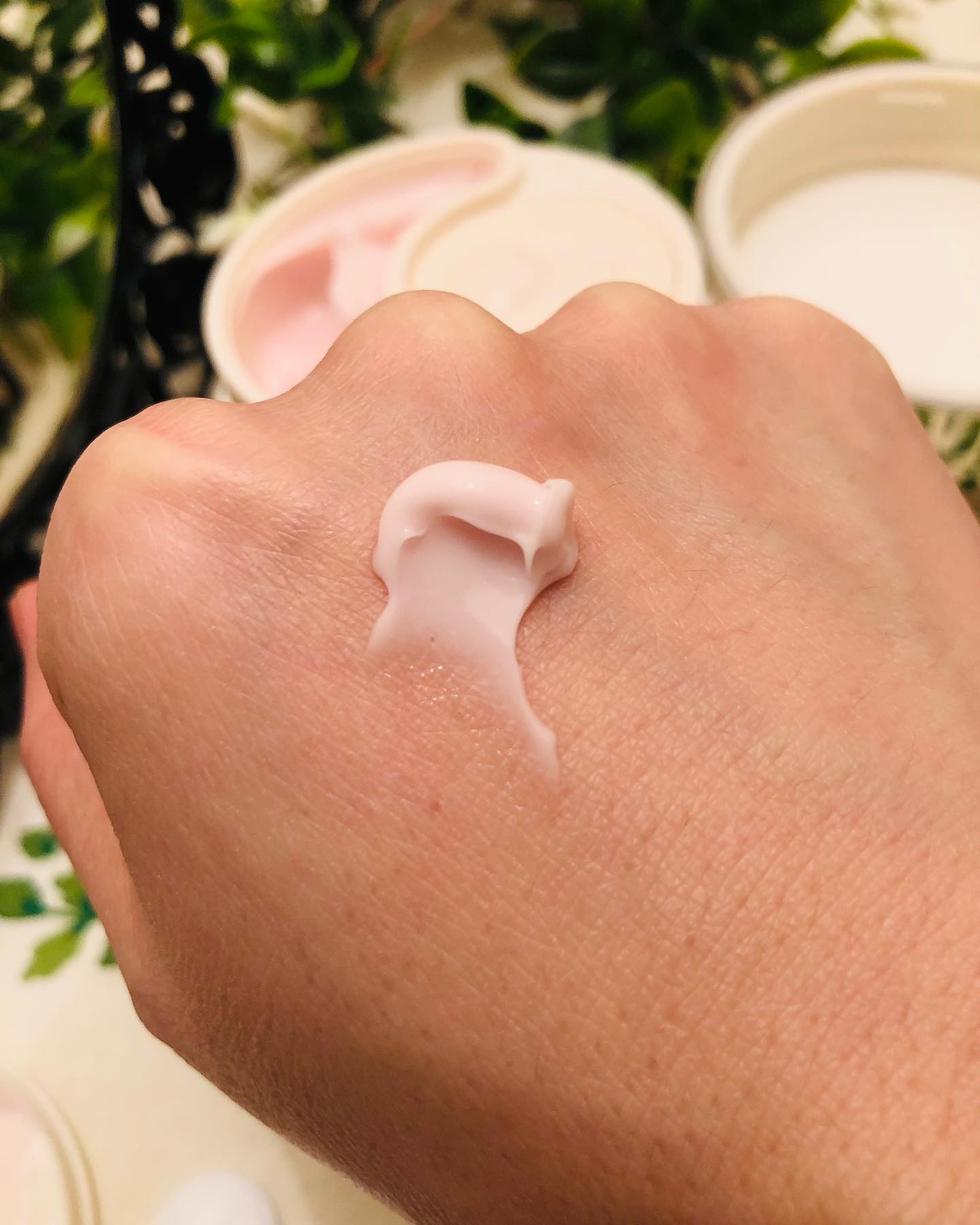 ゴージャスなゴールドとかわいいお花のパッケージがツボすぎる… 肌に直接乗せるクリームタイプのフェイスマスクのほうが繊細な凹凸もカバーできるとのこと どちらのクリームもほんのり桃色で化粧水でふきとったあとはふっくら、しっとり