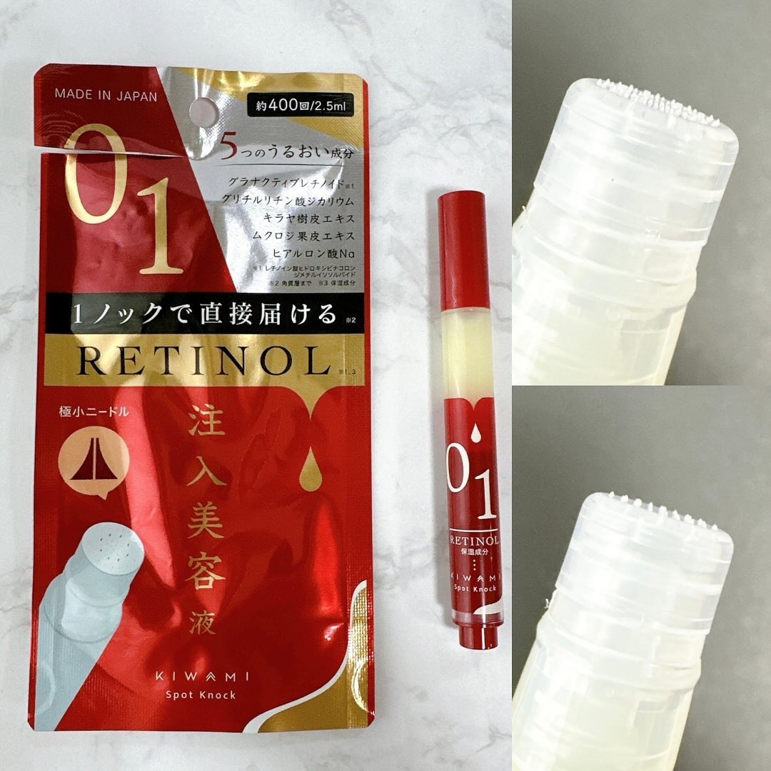 「注入美容」×「次世代レチノール」*1 普段のスキンケアに+αのスペシャルケア。美容成分(グラナクティブレチノイド)を直接”肌”*2に注入することで、ダイレクトにアプローチケアする商品です。 ピンポイントでレチノール*4を肌内部*2まで届け、肌の復元する力でしっかりとレチノールを留まらせることができるので、より潤った肌ヘ導いてくれる商品となってます。 1本で400ノックご使用いただけるので、朝夜毎日使えるのでコストパフォーマンス(1ノック約10円)*5も良いです。