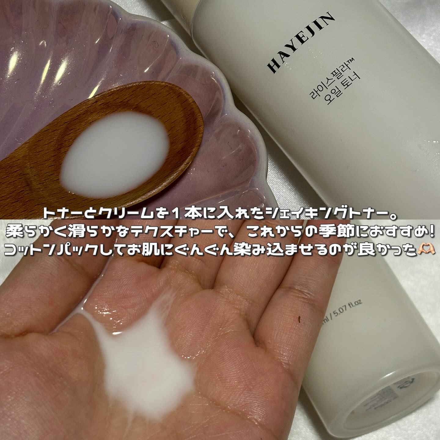 これ1本でスキンケア完了😉🌾 トナーとクリームを1つにした振って使うタイプのヴィーガントナーです。 ミネラル豊富な海風で育った韓国プアンの特産品「プアン米」の米ぬか成分が配合されているそう! さらっとしたテクスチャですが、肌になじませてみると程よいしっとり感で乾燥の気になる季節にとても良さそうです。