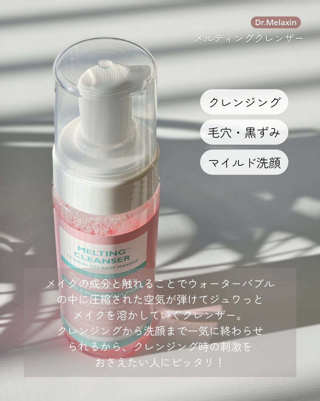メイクだけを落とすバブルクレンザー🆕 カラミン➡️肌荒れ防止、敏感になった肌を落ち着かせる 2in1で洗顔までできるので肌への負担を考えられてるのが嬉しい! 泡だけで落とすので肌への摩擦を減らし毛穴汚れまで落とす💧