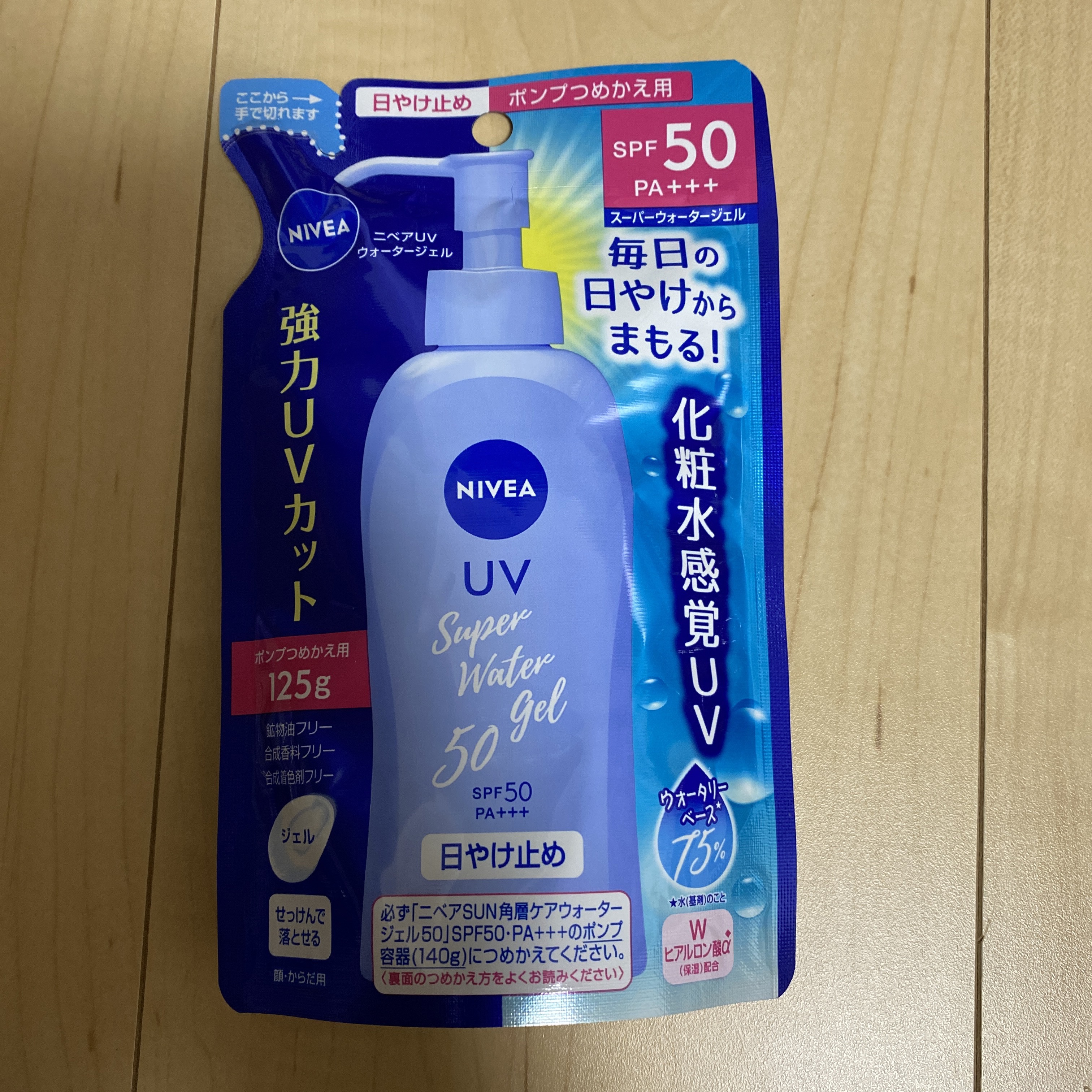 ■スーパーウォータージェル/ニベアSPF50PA+++140g毎年リピートで何度も購入している日焼け止めです。デイリーに使う体用の日焼け止めはこれ一択です。・良い点伸びの良いテクスチャ。ベタつかず軽い使い心地なのに乾燥を感じない。透明で白浮き...
