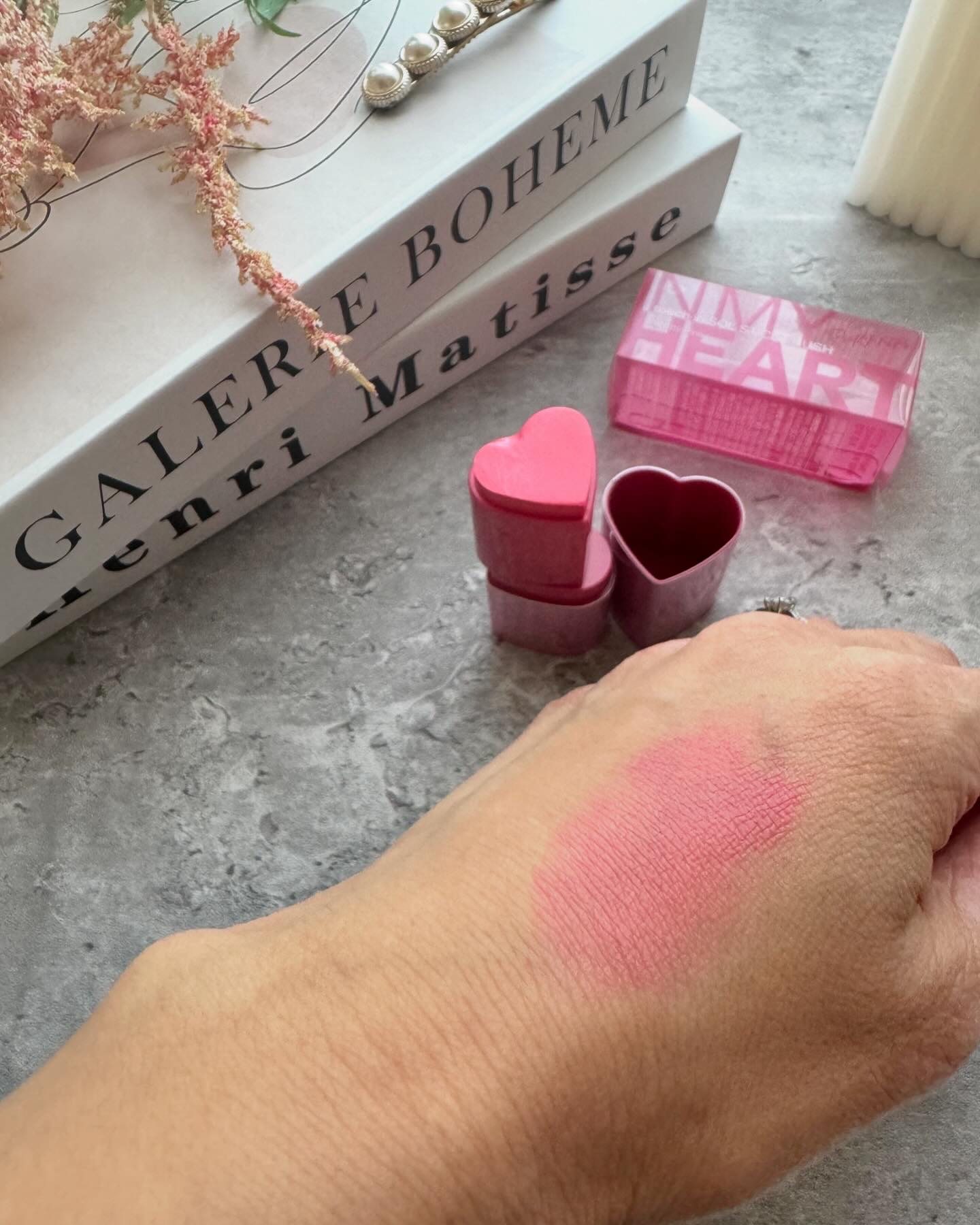 ハート型になっていて、見ているだけでテンション上がるよ🥰 ロゴも可愛すぎる🫶🏻 ツヤツヤな仕上がりで発色がいい◎ 色持ちもよかった!! 今回私が試した色はパンチピンク💗 彩度の高い水彩画ピンクで、血色感のある仕上がりに!!