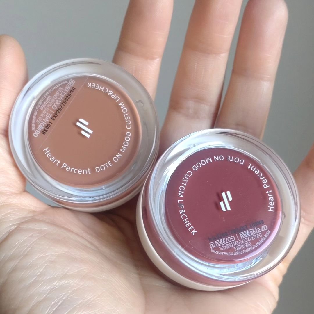 ふわっとマットとシアーなシャインが1つに ハートパーセントの Dote On Mood Custom LIP&CHEEK を使ってみました🕊️ ムースのようなふわっとテクスチャーのフォグバーム シアーな発色でツヤ仕上がりのシャインバーム 異なる質感で毎日ニュアンスの違うメイクが楽しめます♪