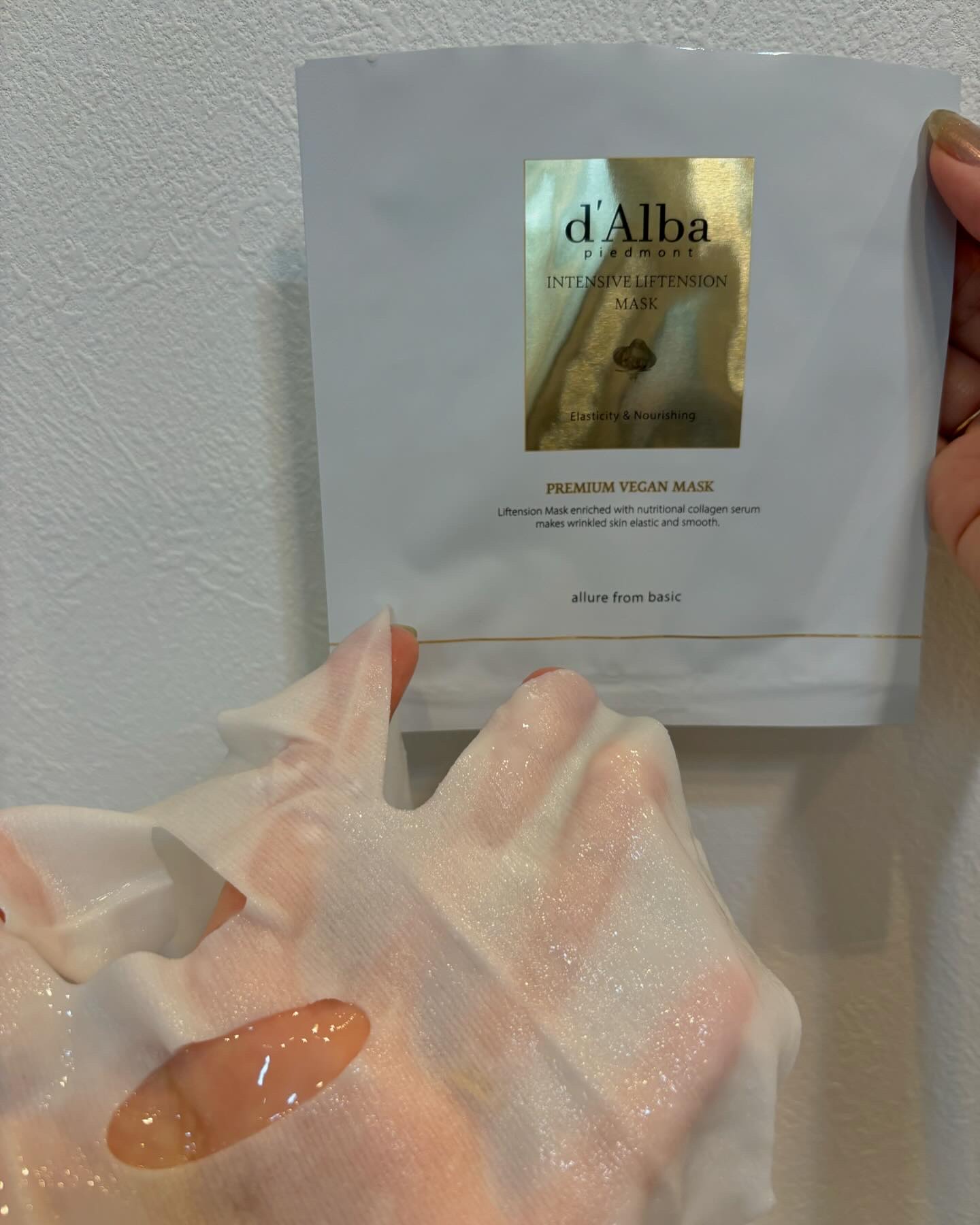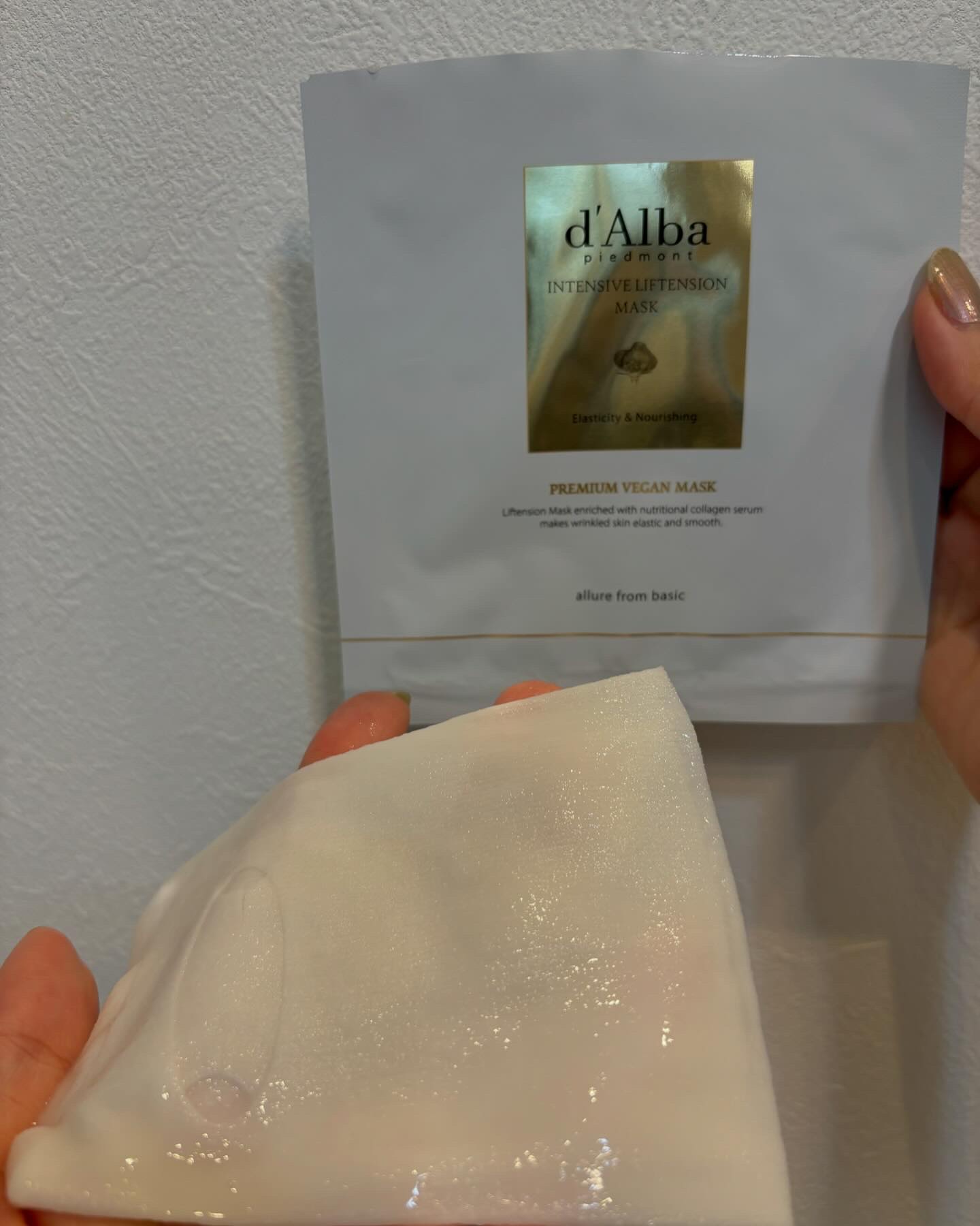 d'Albaのマスクはちょっと高いけど本当に本当に神🥺‼️‼️ 格別に肌が整うし、2024年のベストオブマスクでした💓 特におすすめなのがインテンシブリフテンションマスクです。肌に優しく密着するビーガンマスクシートで、5種のヒアルロン酸とホワイトトリュフ配合のセラムが250時間保湿効果を発揮してくれます♡ たるんだ肌を引き締め、即効リフティング効果を発揮してくれて毛穴レスの肌を目指せます🕊️