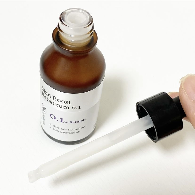 スキンケアのファーストステップケアで肌コンディションを整える導入美容液として「スキンブースト」シリーズ 日常使いしやすい濃度で手軽にレチノール美容を続けることができる処方設計。 スポイトタイプで衛生的に使えます ゆるい乳液タイプで肌馴染みがよくスルスルと伸びます!