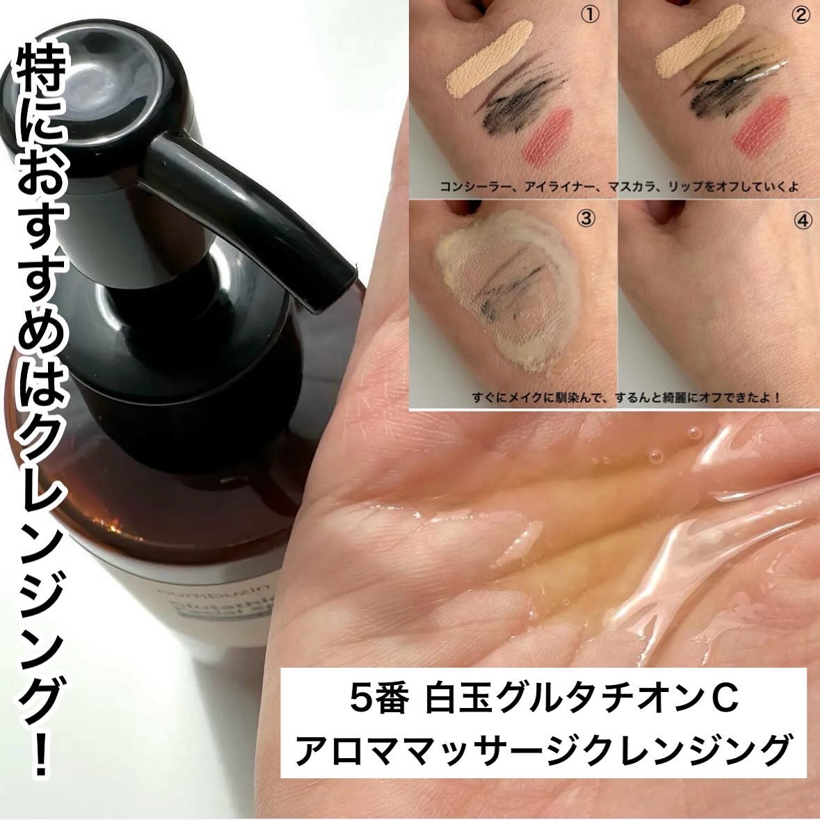私の1番推しは【5番】‼️ 5番は美白(*)ケアに特化した白玉グルタチオンCラインです♡ 特に好きなのが白玉グルタチオンCアロマクレンジングオイル♡ とにかくいい香りで一日の疲れも飛ばしてくれる✨ プチプラなのに本格的な美白(*)ケアが出来ちゃう♡ 韓国では一時期入手困難になるほど大人気だったらしい🥹