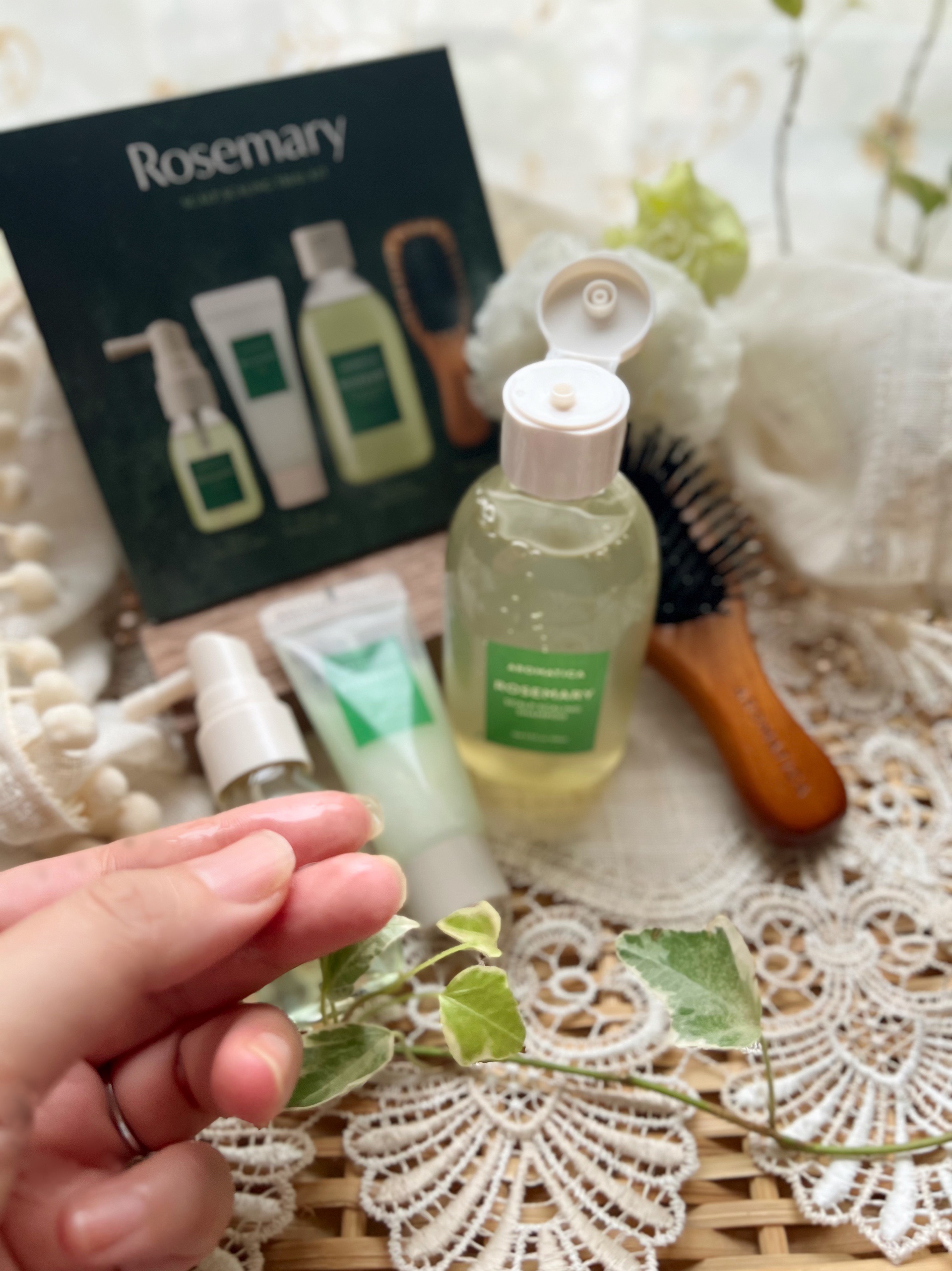 ホリスティックアロマテラピーをもとに製品の全ては合成香料と人体に有害な成分を取り除いたヴィーガンフォーミュラー処方 𖤐ローズマリースカルプスケーリングシャンプー 頭皮の角質やかゆみ緩和、頭皮の回復を促進し健康的で柔らかい髪質を保つシャンプー 人気商品を集めたトライアルキットは手軽に試せるしミニサイズだから旅行にも持って行きやすいよ✈️💎