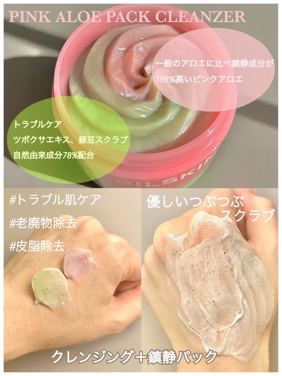 #PR@aprilskin_officialjapan様より提供【ピンクアロエメレンゲクレンザー】生クリームのように可愛く絞られたお花のような見た目がかわいい。洗顔とパックがこれ一つで完結パックとして使う時はそのまま塗布して、1分したら洗い流...