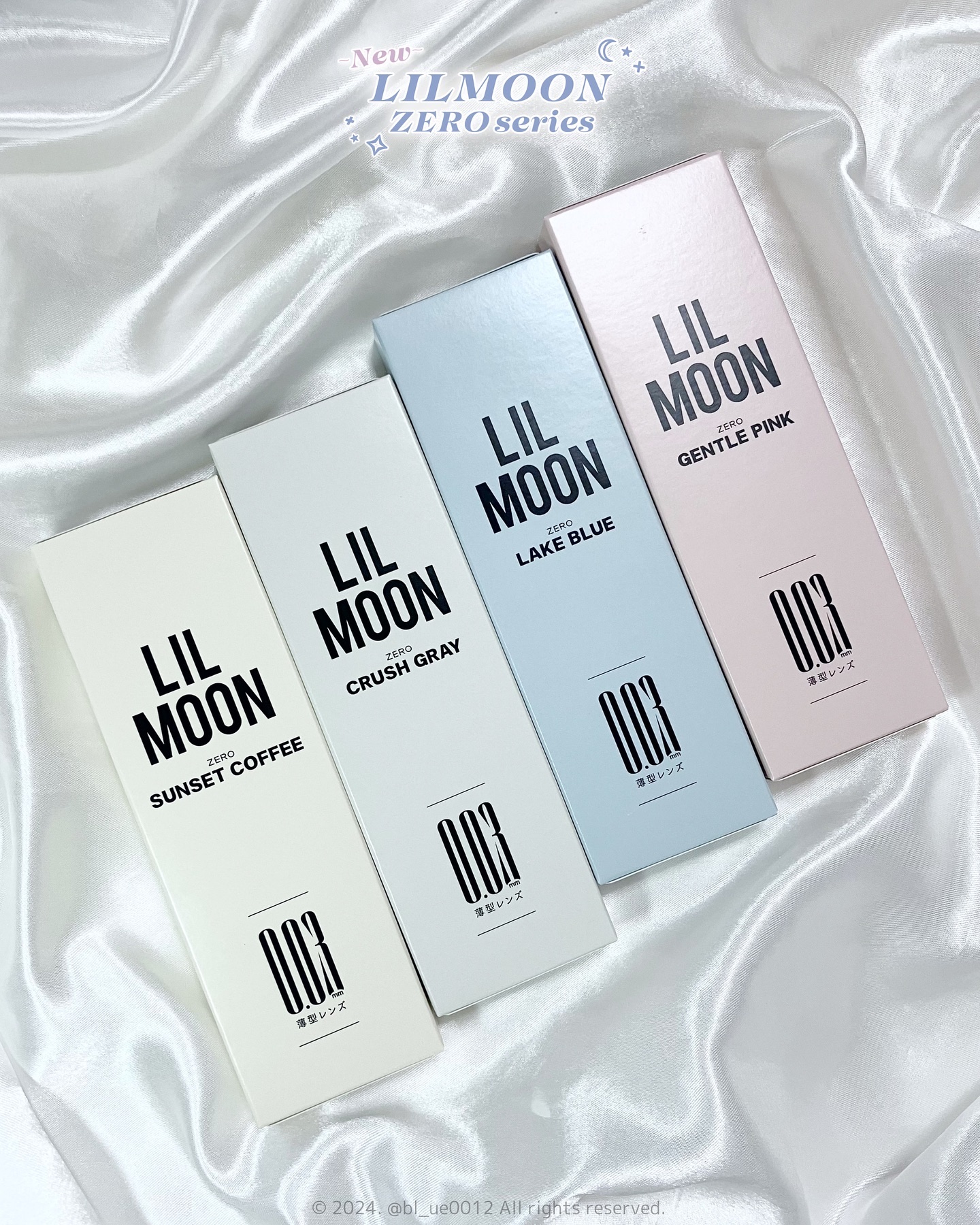 - "ZERO”感つけ心地、きらめきUP! (1)全度数0.03mm極薄*1*2 LILMOON(リルムーン)「0.03シリーズ」は、全度数レンズの中心厚が0.03㎜で、レンズが薄く厚みが少ない分、まるで裸眼のような快適な付け心地で異物感を感じにくいです。 (2) 全度数酸素透過率DK/t:45 『LIL MOON(リルムーン)』0.03シリーズは全度数レンズの酸素透過率DK/t:45、従来の含水率38%通常厚レンズと比べ2倍以上*2の酸素透過率を実現し、酸素不足による充血を軽減。高い保水力を持つMPCポリマーを保存液に配合し、乾燥や目のゴロゴロ感を軽減。 (3)気分で選べるクリアレンズとカラーレンズ 多彩な瞳も、自然な瞳も,カラコンとクリアレンズ、どちらも揃う。カラコンお試しサイズ2枚入りを用意、気軽にお試しできちゃう。幅広いラインナップで、瞳に自信と輝きをプラス、毎日のスタイルを自由に楽しめる! <クラッシュグレー> センス◎!やりすぎないアクセントで、馴染みのいいアッシュグレーアイ <サンセットコーヒー> ちゅるんと透明感UP演出! 落ち着いた水光ブラウンアイ <ジェントルピンク> クリっと瞳を際立たせるふんわり太フチと、 優しいほんのりピンクアイ <ゼロインク> ダークウッドをイメージしたブラックレンズ、透明感あふれるクリっとした瞳 <ゼロヘーゼル> 大人っぽいブラウンに差し込む ヘーゼルカラー、オシャレなブラウンアイ <ゼロチャコール> 落ち着いたダークグレーにブルー でアクセント、クールな大人アイ <レイクブルー> ほどよいフチ感で立体感見え重視、深みのあるダークブルーアイ *1:使用感には個人差があります *2:当社製品比較 カラーコンタクトレンズの不適正使用による眼障害の危険性等などがあります。 ●コンタクトレンズは高度管理医療機器です。不十分な洗浄・消毒など不適切なケアや、長時間・交換期間を超えた装用により、アレルギー性結膜炎、角膜感染症、角膜潰瘍等の重篤な眼障害が発生する危険性があります ●ご使用前に取扱説明書を確認してください 使用上の留意事項 ●眼科医院等を受診してからお求めください ●眼に異常を感じたら直ちにレンズ使用を中止し、お近くの眼科等で診察を受けてください ●医師の指示にしたがってご使用ください ●コンタクトレンズを装用する場合、自覚症状がなくても、眼科医院等での定期検査を受けてください ●レンズに不具合がある場合は使用しないでください
