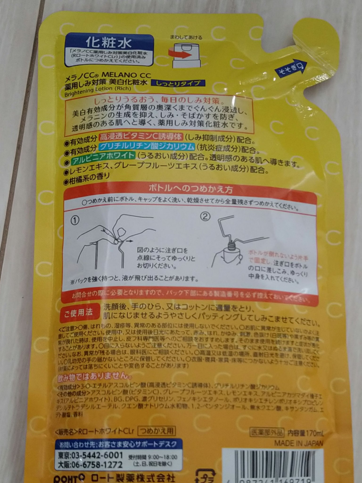 ロート製薬さんのココロートパーク会員限定プレゼントキャンペーンにて【メラノCC化粧水】をいただきました🥳💛ポイント1💛薬用の有効成分で肌を整え、明るい肌を✨①シミそばかす予防L-アルコビン酸2-グルコシド(持続型ビタミンC)配合②キメが整うパ...