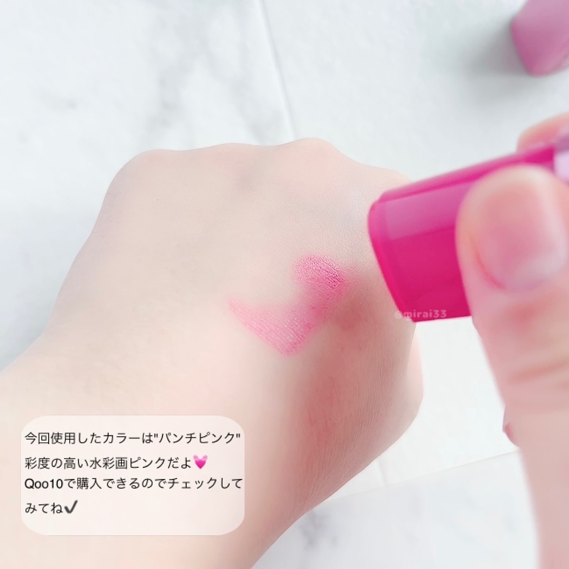 ツヤ感のかわいい仕上がりのチーク #パンチピンク は鮮やかな可愛らしいピンクカラーでした🩷 ジュワッと滲み出てくる発色で重ねれば重ねるほど発色が強く出るのでお好みのカラーに調整しやすいです👍 ピタッと密着してくれるからよれにくくてキレイな発色が1日中キープしてくれました👏