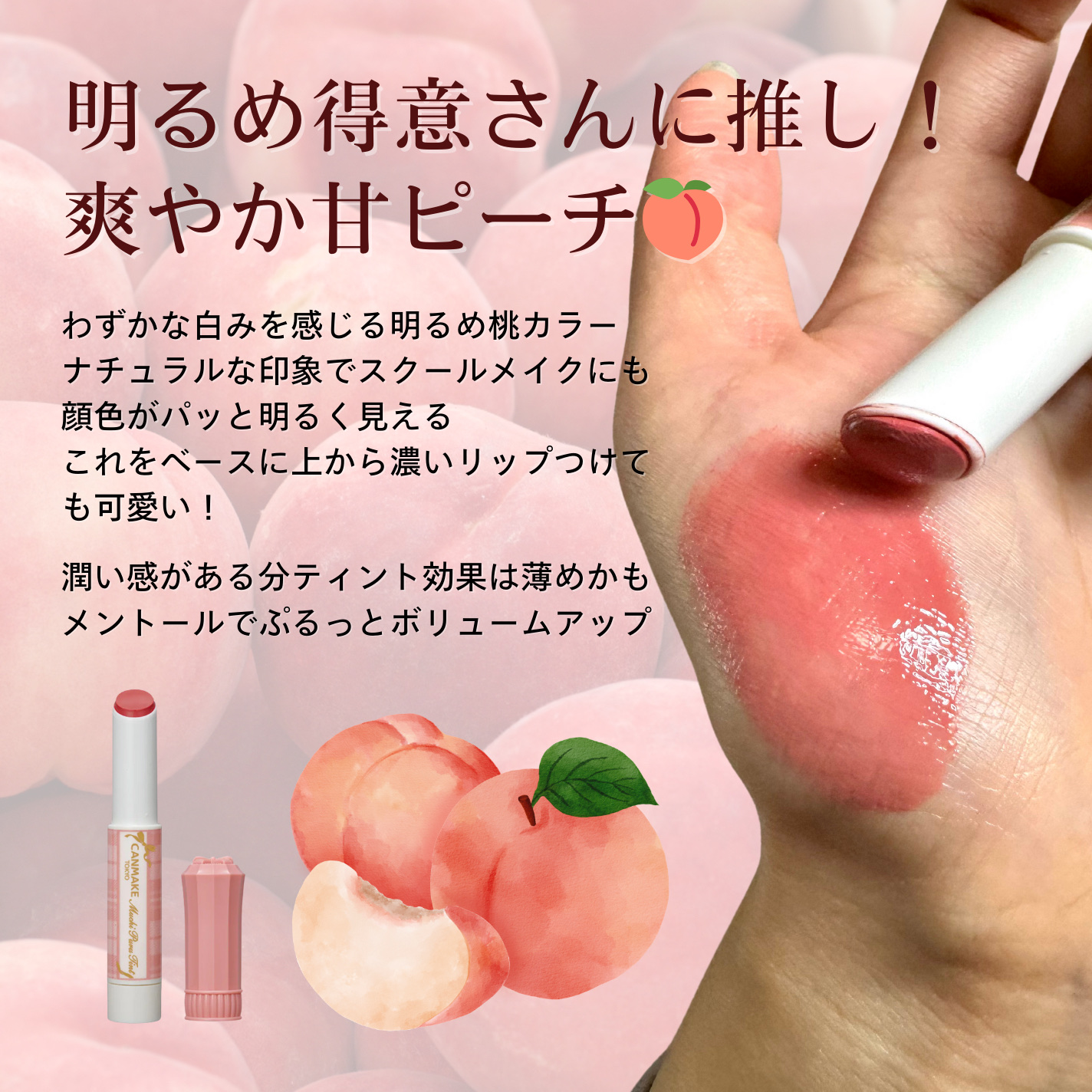 - <01 バタースコッチ> 水添ポリイソブテン、トリエチルヘキサノイン、ビスジグリセリルポリアシルアジペート-2、ヒドロキシステアリン酸エチルヘキシル、ワセリン、リンゴ酸ジイソステアリル、マイクロクリスタリンワックス、合成ワックス、シリカ、セスキイソステアリン酸ソルビタン、メントキシプロパンジオール、キャンデリラロウ、バニリルブチル、トコフェロール、クエン酸、クエン酸Na、ヒアルロン酸Na、アルガニアスピノサ核油、ハチミツ、シア脂、水、BG、加水分解コラーゲン、酸化鉄、酸化チタン、黄4、黄5、赤202、橙201、テトライソステアリン酸ポリグリセリル-2、青1、水酸化Al、赤223 <02 モモ> 水添ポリイソブテン、トリエチルヘキサノイン、ビスジグリセリルポリアシルアジペート-2、ヒドロキシステアリン酸エチルヘキシル、ワセリン、リンゴ酸ジイソステアリル、マイクロクリスタリンワックス、合成ワックス、シリカ、セスキイソステアリン酸ソルビタン、メントキシプロパンジオール、キャンデリラロウ、バニリルブチル、トコフェロール、クエン酸、クエン酸Na、ヒアルロン酸Na、アルガニアスピノサ核油、ハチミツ、シア脂、水、BG、加水分解コラーゲン、酸化チタン、黄4、黄5、赤202、酸化鉄、橙201、水酸化Al、テトライソステアリン酸ポリグリセリル-2 <03 ワインベリー> 水添ポリイソブテン、トリエチルヘキサノイン、ビスジグリセリルポリアシルアジペート-2、ヒドロキシステアリン酸エチルヘキシル、ワセリン、リンゴ酸ジイソステアリル、マイクロクリスタリンワックス、合成ワックス、シリカ、セスキイソステアリン酸ソルビタン、メントキシプロパンジオール、キャンデリラロウ、バニリルブチル、トコフェロール、クエン酸、クエン酸Na、ヒアルロン酸Na、アルガニアスピノサ核油、ハチミツ、シア脂、水、BG、加水分解コラーゲン、黄4、赤202、酸化チタン、酸化鉄、橙201、黄5、テトライソステアリン酸ポリグリセリル-2、赤223、水酸化Al、青1 <05 フィグピューレ> 水添ポリイソブテン、トリエチルヘキサノイン、ビスジグリセリルポリアシルアジペート-2、ヒドロキシステアリン酸エチルヘキシル、ワセリン、リンゴ酸ジイソステアリル、マイクロクリスタリンワックス、合成ワックス、シリカ、セスキイソステアリン酸ソルビタン、メントキシプロパンジオール、キャンデリラロウ、バニリルブチル、トコフェロール、クエン酸、クエン酸Na、ヒアルロン酸Na、アルガニアスピノサ核油、ハチミツ、シア脂、水、BG、加水分解コラーゲン、酸化チタン、黄4、赤202、黄5、酸化鉄、橙201、青1、水酸化Al、テトライソステアリン酸ポリグリセリル-2、赤223 <06 ラズベリーケーキ> 水添ポリイソブテン、トリエチルヘキサノイン、ビスジグリセリルポリアシルアジペート-2、ヒドロキシステアリン酸エチルヘキシル、リンゴ酸ジイソステアリル、ワセリン、マイクロクリスタリンワックス、合成ワックス、シリカ、セスキイソステアリン酸ソルビタン、メントキシプロパンジオール、キャンデリラロウ、バニリルブチル、トコフェロール、クエン酸、クエン酸Na、ヒアルロン酸Na、アルガニアスピノサ核油、ハチミツ、シア脂、水、BG、加水分解コラーゲン、酸化チタン、酸化鉄、赤202、橙201、水酸化Al、テトライソステアリン酸ポリグリセリル-2、青1、赤223、黄5 <07 フルーツオレ> 水添ポリイソブテン、トリエチルヘキサノイン、ビスジグリセリルポリアシルアジペート-2、ヒドロキシステアリン酸エチルヘキシル、ワセリン、リンゴ酸ジイソステアリル、マイクロクリスタリンワックス、合成ワックス、シリカ、セスキイソステアリン酸ソルビタン、メントキシプロパンジオール、キャンデリラロウ、バニリルブチル、トコフェロール、クエン酸、クエン酸Na、ヒアルロン酸Na、アルガニアスピノサ核油、ハチミツ、シア脂、水、BG、加水分解コラーゲン、酸化チタン、酸化鉄、黄4、水酸化Al、赤202、橙201、黄5、青1、テトライソステアリン酸ポリグリセリル-2 <04 チョコミルク> 水添ポリイソブテン、トリエチルヘキサノイン、ビスジグリセリルポリアシルアジペート-2、ヒドロキシステアリン酸エチルヘキシル、リンゴ酸ジイソステアリル、ワセリン、マイクロクリスタリンワックス、合成ワックス、シリカ、セスキイソステアリン酸ソルビタン、メントキシプロパンジオール、キャンデリラロウ、バニリルブチル、トコフェロール、クエン酸、クエン酸Na、ヒアルロン酸Na、アルガニアスピノサ核油、ハチミツ、シア脂、水、BG、加水分解コラーゲン、酸化鉄、青1、酸化チタン、橙201、赤202、テトライソステアリン酸ポリグリセリル-2、黄4、水酸化Al