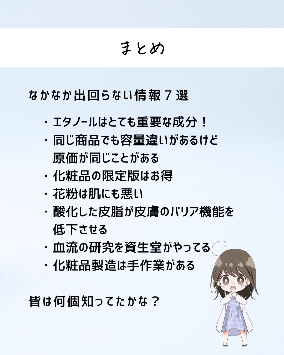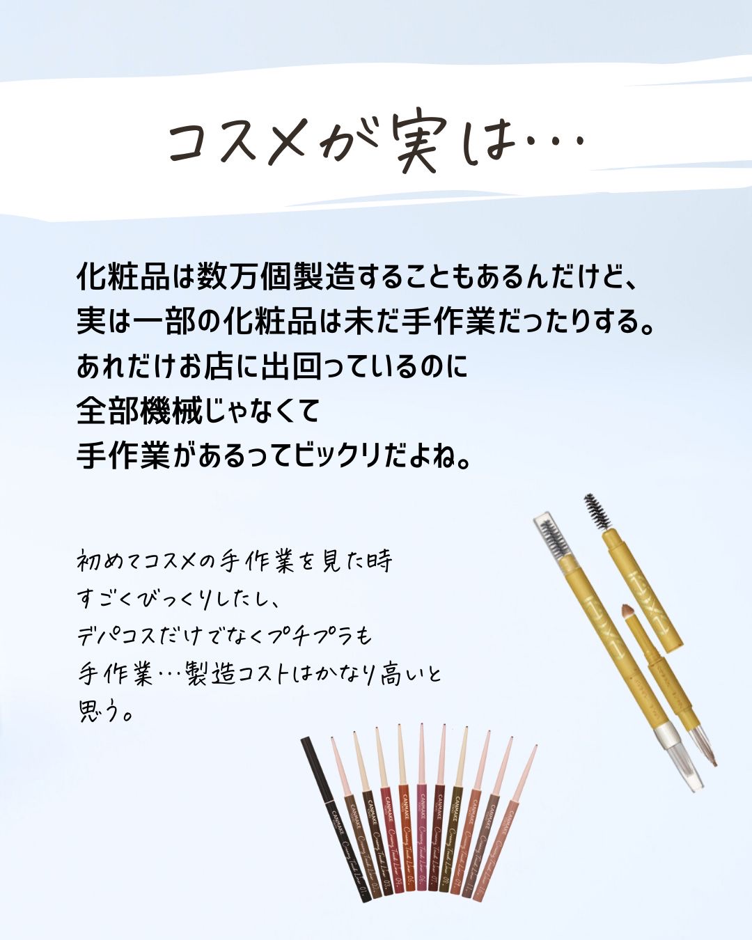 特定の有効成分を試してみたい。美容成分を試したい。そんな時は代用してもいいけど、それって似てるのかな?って思うときが正直ある。 同じ成分があっても実は濃度が違ったり、処方技術が違ったり。技術が違うと使用感も剤型も変わることがあることは知ったうえで使うといいかも。 せっかくプチプラ化粧品を買うならそれはそれで楽しんでほしいから是非念頭にいれてほしいな!!