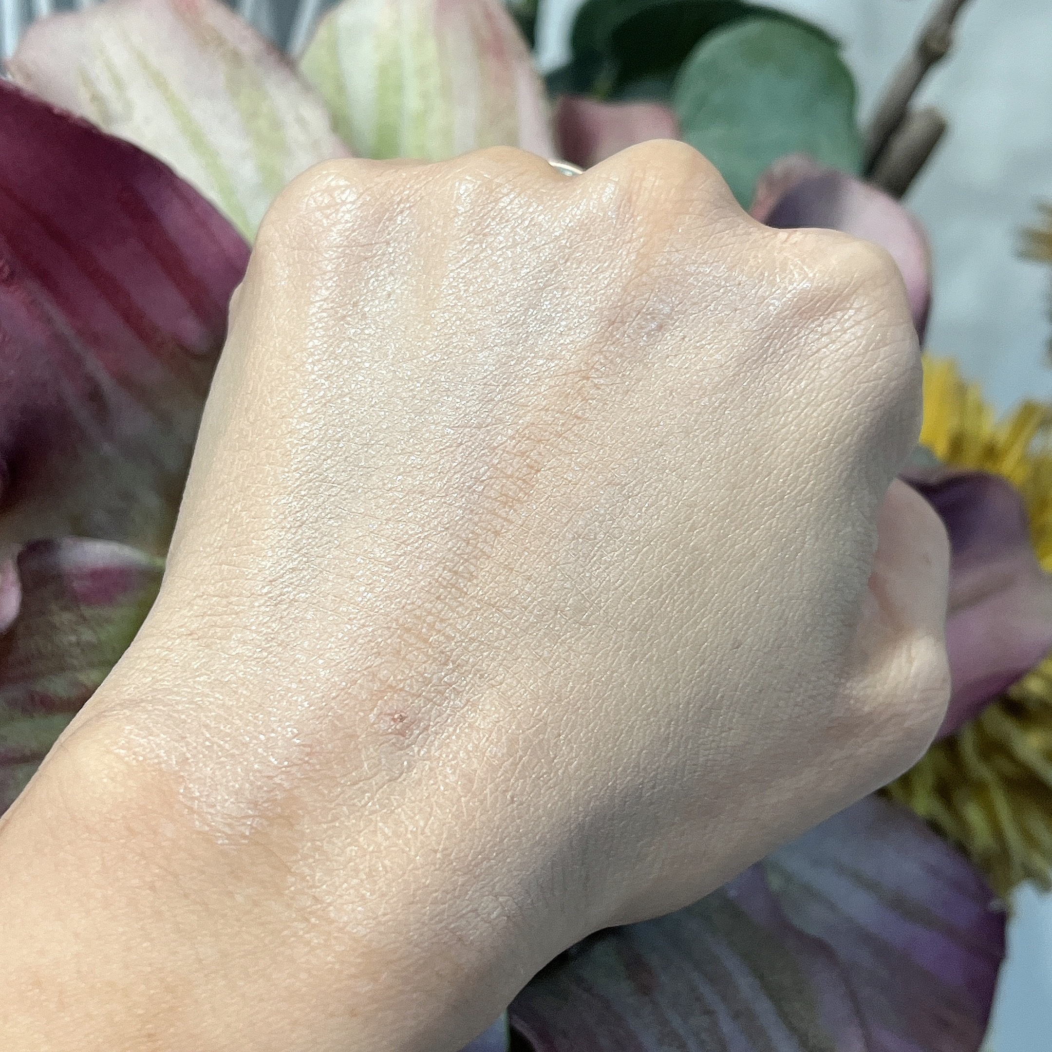 - テクスチャーは、肌が呼吸をするように、軽くて快適な、スキンブリージングテクスチャーです。 スキンケア成分を70%も使っているので、オイル感のあるツヤではなく、しっとりとして潤いが感じられる水分GLOWです。 光の屈折を利用して肌が輝きます。 パフでたたきこむことで、ぴたっと肌に密着し、毛穴もしっかりカバーしてくれます。