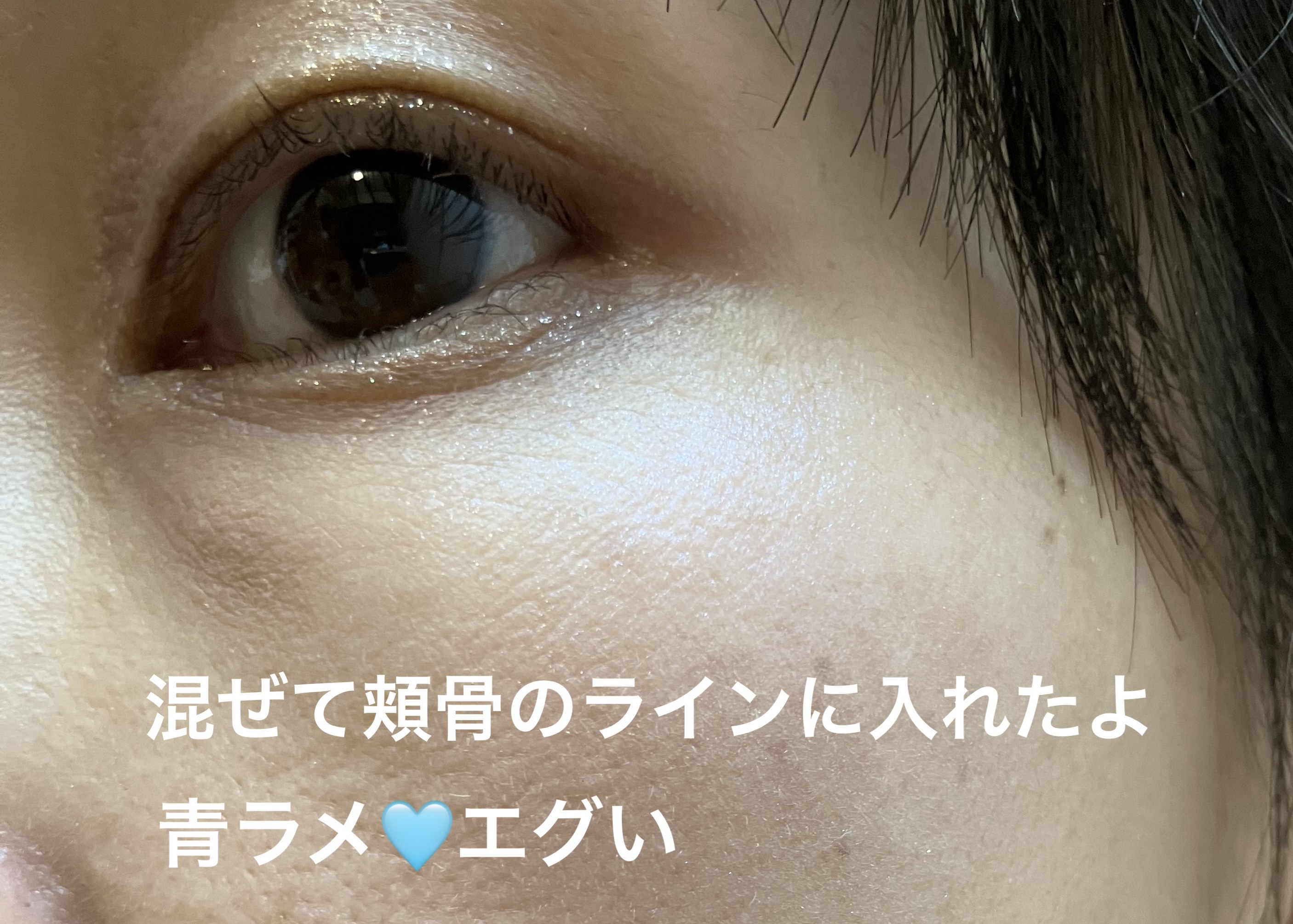 TETEUMって言う雑貨屋さん?とのコラボアイテム。 青ラメが可愛い💕 可愛い事だけはわかりました。 筆にアイシャドウが着きました。 うまくラメが取れない。 塗り方が分からん(T ^ T) 涙袋に塗らない方が良かったかなぁ。。。 ラメ飛びしないのは良き🙆♀️ 韓国のインタグラマーさんみたいに瞼にピャッとひきたい。(語彙力皆無。) 写真にうまくラメが写らなくて何回も撮り直してアイライナーとマスカラ塗るの忘れてた。なんならビューラーもしてない💦 ラメはなんとか写りました!! 多色ラメと大きめグリッターが可愛い❤️ 出来れば夏に出会いたかった。 いや、冬に使っても可愛いかも。