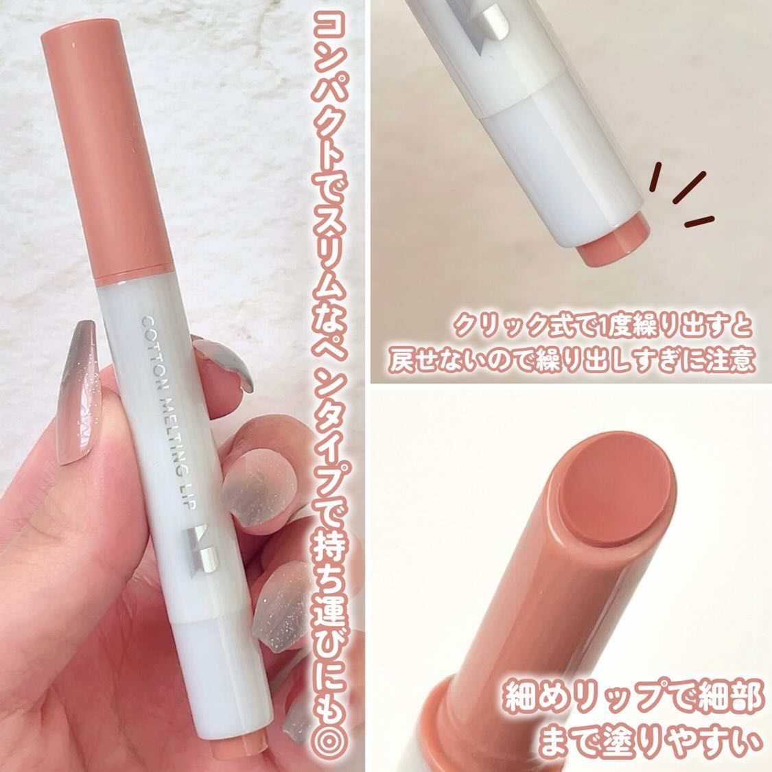 ふんわり発色でときめき不可避でした…𓈒𓂂𓏸🤍 ふわっと溶けていくような軽くてクリーミーなテクスチャーが塗り心地抜群!⸒⸒☁️ 唇の表面もしっとりなめらかに仕上がるのでマットリップが苦手な方にもオススメできちゃう使用感です💭⸒⸒ スリムな小さめサイズで持ち運びにも便利だし、馴染みやすいカラー展開がとっても嬉しい🤍