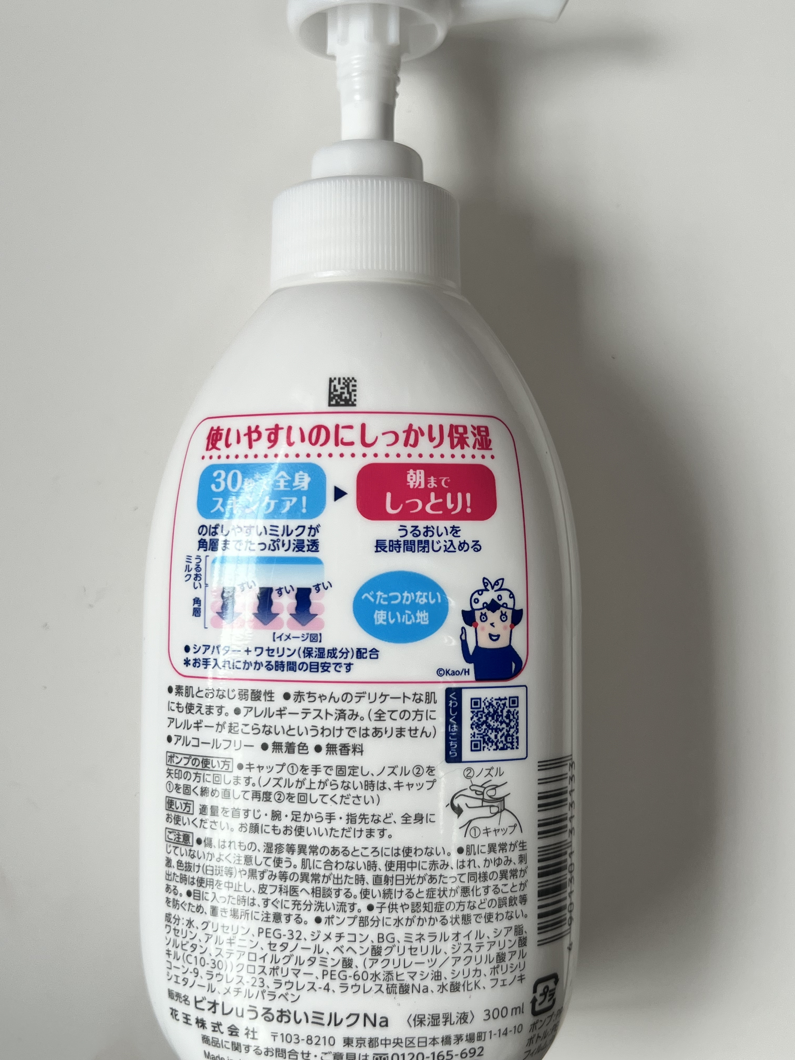 - 2020年秋、パッケージデザインを変更。(中身の変更はございません) 使いやすいのにしっかり保湿。30秒*で全身スキンケア! のばしやすいミルクが角層までぐんぐん浸透。うるおいを長時間閉じ込め、朝までしっとり! 保湿成分:シアバター、ワセリン配合。 素肌とおなじ弱酸性 赤ちゃんのデリケートな肌にも使えます ●アルコールフリー●無着色●無香料