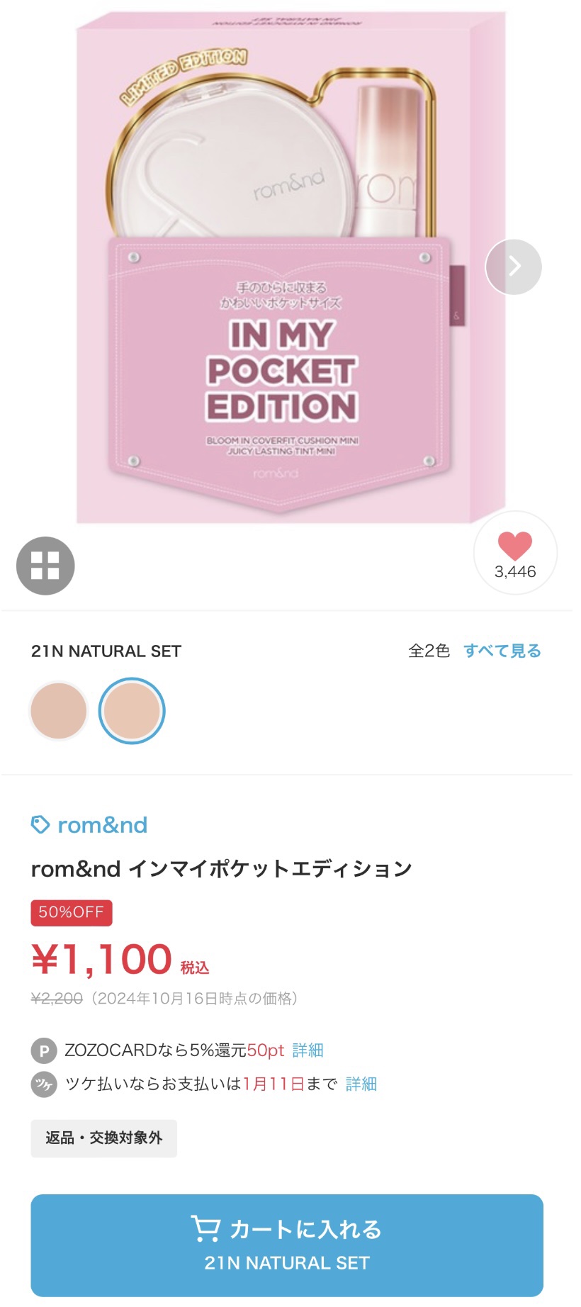 rom&nd ヌーゼロクッション | 2,750円 |