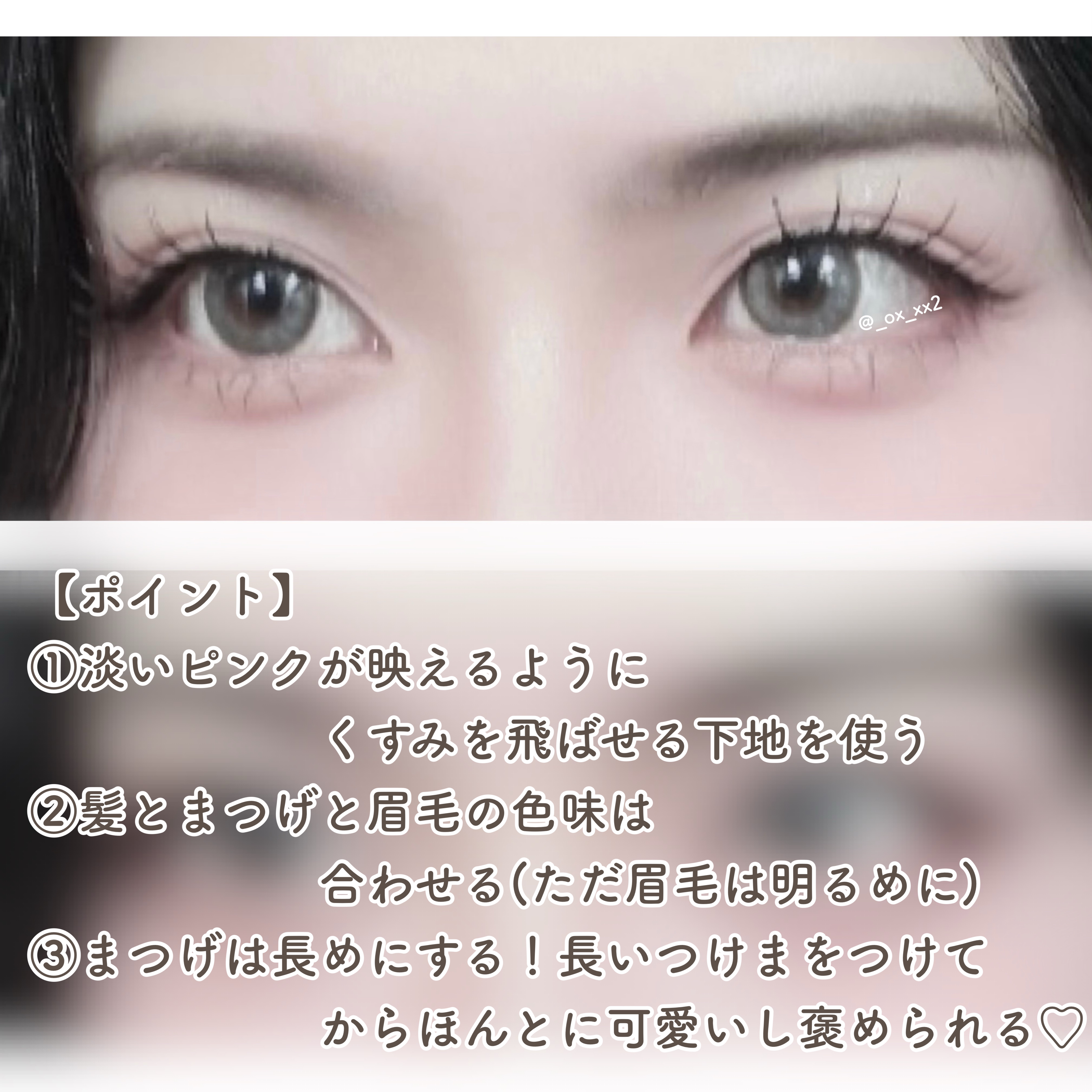 💗ベースカラーを全体にのせる💗 薄めのカラーがオススメです! 🍊二重幅にグラデーションになるようにのせる🍊 目の縦幅を出すためにグラデにします! 🍇アイライナーを長めに引く🍇 上目頭と上目尻に引く、目の横幅を出すためです!