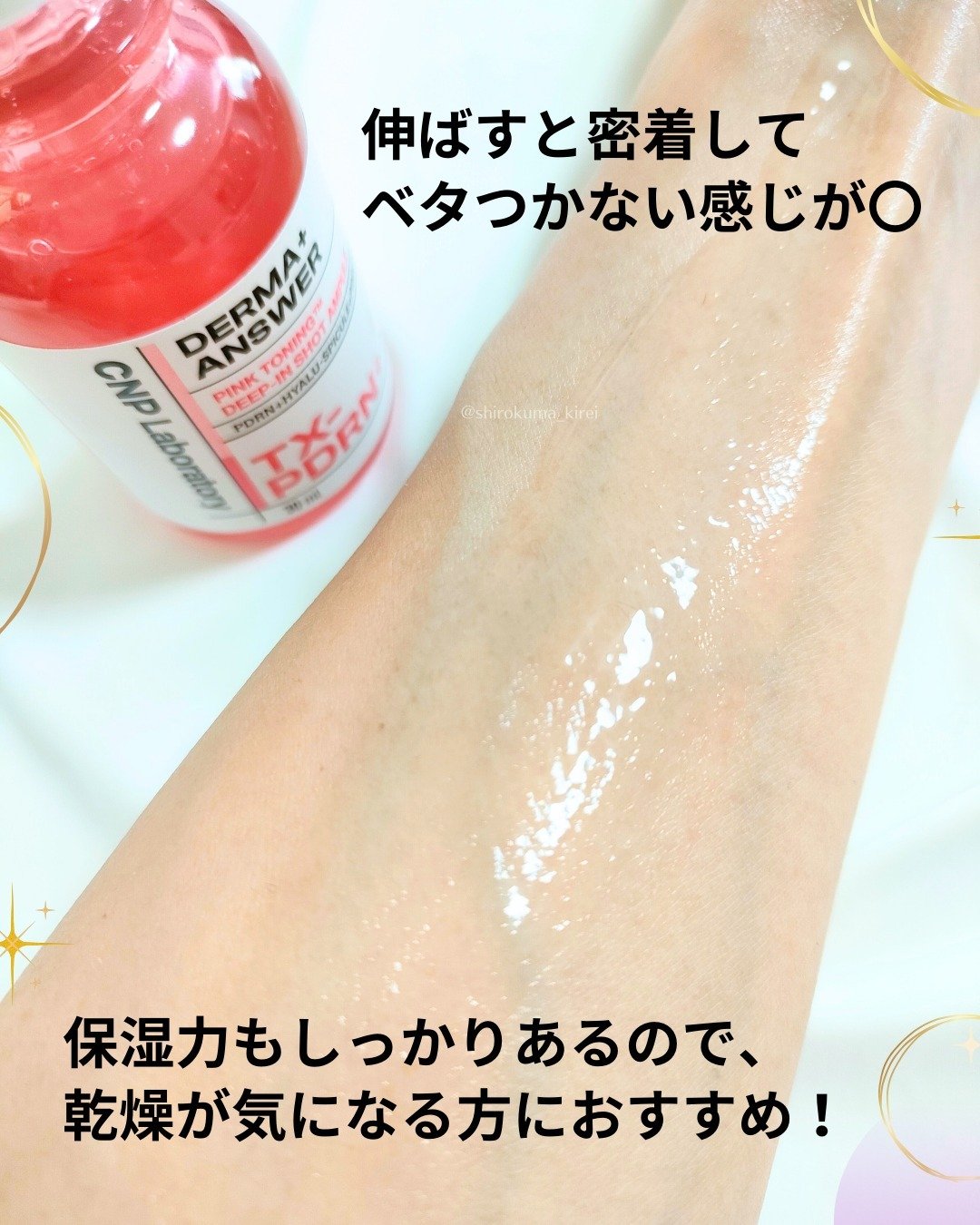 PDRN+トラネキサム酸の美白特化成分組み合わせでくすんだ毛穴を明るく照らしてくれるピンクライト針美容液🩷 CNP独自の「ヒアルロンスピキュール」を含み保湿感、毛穴引き締め、ニキビ跡・シミ改善の働きがあるのだそう! 冬の乾燥を防いぐ強い味方になってくれそう💗