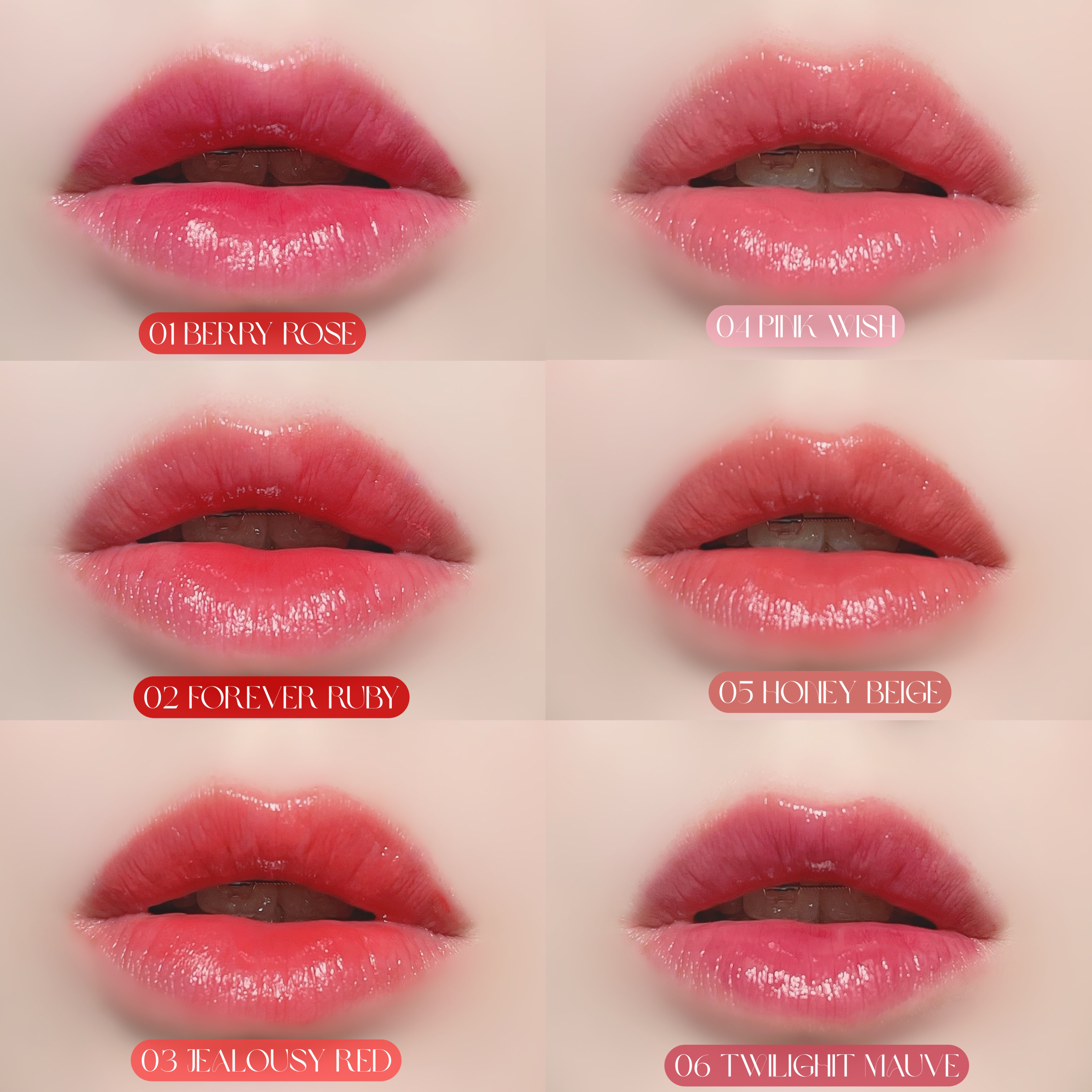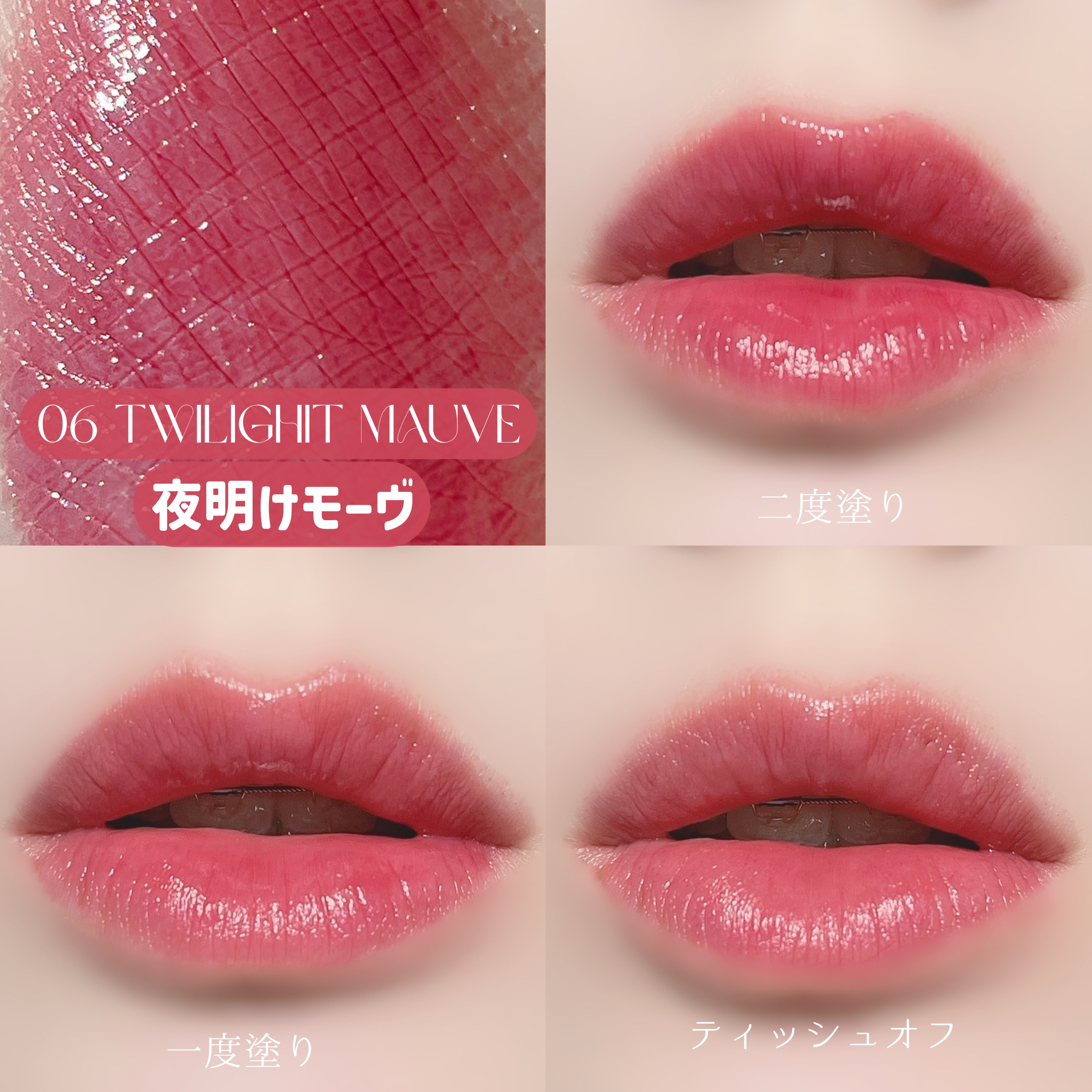 じゅわっと透明感ある美発色💄✨ ティントでありながらも自然なリップカラーを演出🩷 スルスルととろけるような塗り心地💫 唇💋のシワとかも目立ちにくくぷっくりツヤツヤ✨ ティント効果もバッチリで落ちにくいところも🙆♀️ 6色あるのできっとお気に入りのカラーが見つかるはず😍