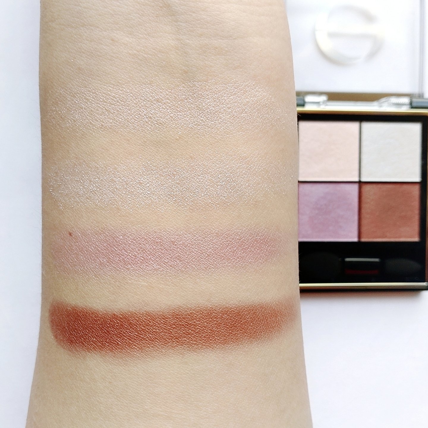 プチプラのクオリティじゃないっ!! 発売前からチェックしていたけれど、ここまで可愛いとは…😆 絶妙カラーで目もとのくすみを飛ばして*明るい印象に🩷 横割りグラデーションでメイクし、立体感をより出したかったので最後に1番左のカラーを上まぶたの真ん中と涙袋にのせています🙆 肌馴染みも良くて粉飛びも感じにくかったです💕 ブラウンの方も店頭に出てたら買おうかな💓