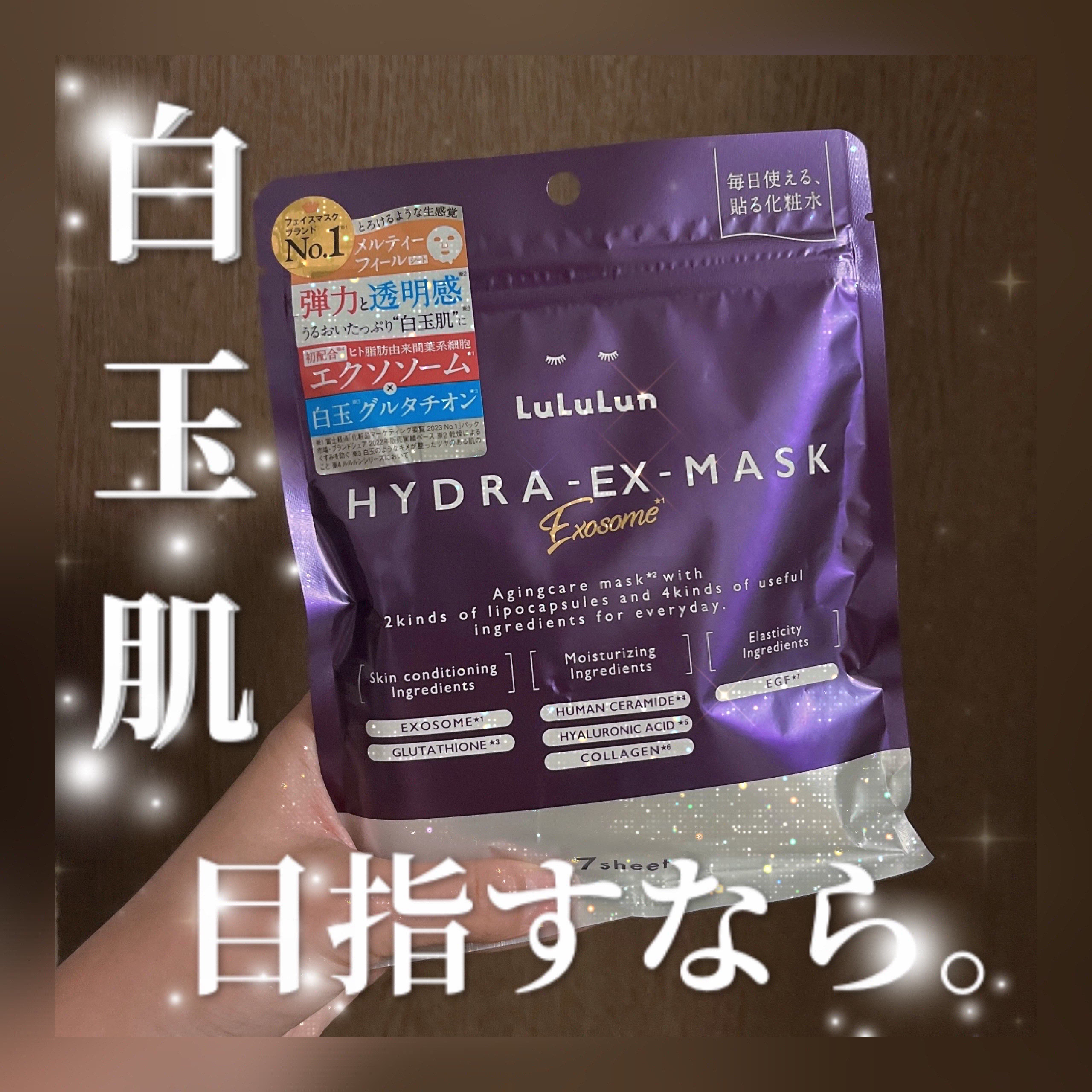 - ルルルンハイドラシリーズから新登場。うるおいにプラスするのは、「エクソソーム*1」。先端再生テクノロジーにインスパイアされた、デイリーエイジングケア※1マスクです。白玉※2グルタチオン*2をプラス配合し、弾力・透明感※3・つやめきのあるなめらかなお肌へ導きます。 (*1 整肌成分 ヒト脂肪由来間葉系細胞エクソソーム *2 整肌成分 グルタチオン、アルブチン、レシチン ※1 年齢に応じて肌へうるおいと弾力を与えるケアのこと ※2 白玉のようなキメが整ったツヤのある肌のこと ※3 うるおいを与えて、乾燥によるくすみを防ぐ)