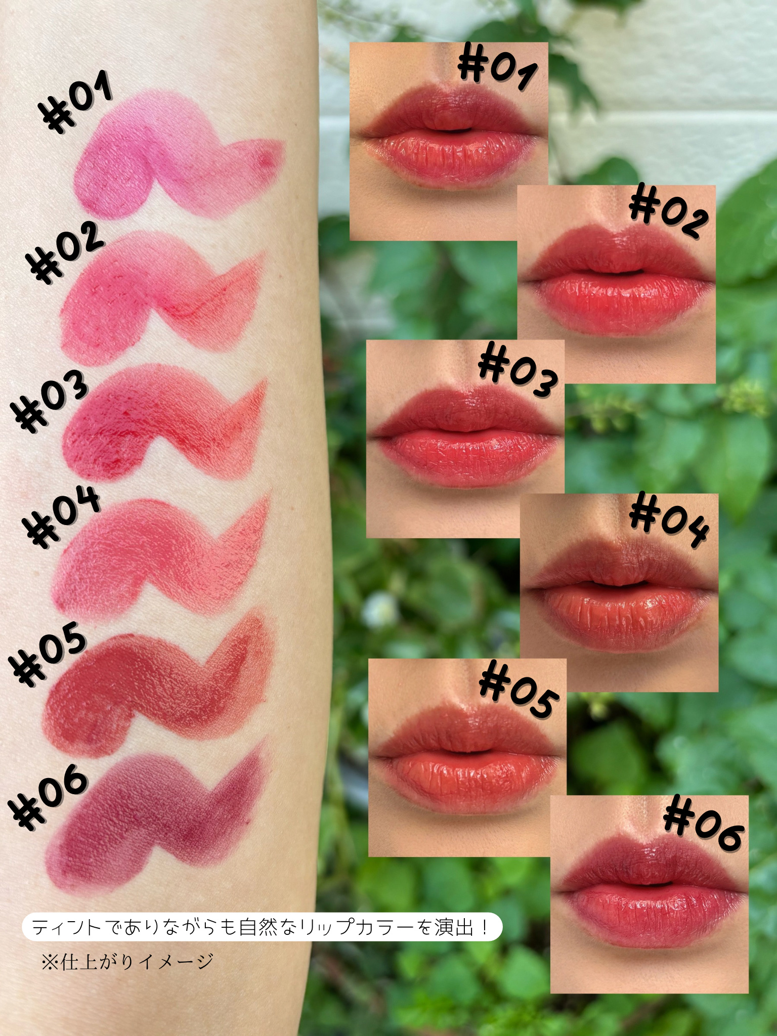 ポッと色づくもぎたてフルーツのような血色感*💖🍑フルーティーリップ&チークバーム発売中🍅それぞれのカラーのスウォッチをご紹介📣どれもジューシーなフルーツみたいで迷っちゃう🥹•❣•୨୧୨୧•❣•01トマト真っ赤なトマトみたいに鮮やかカラー❤02...