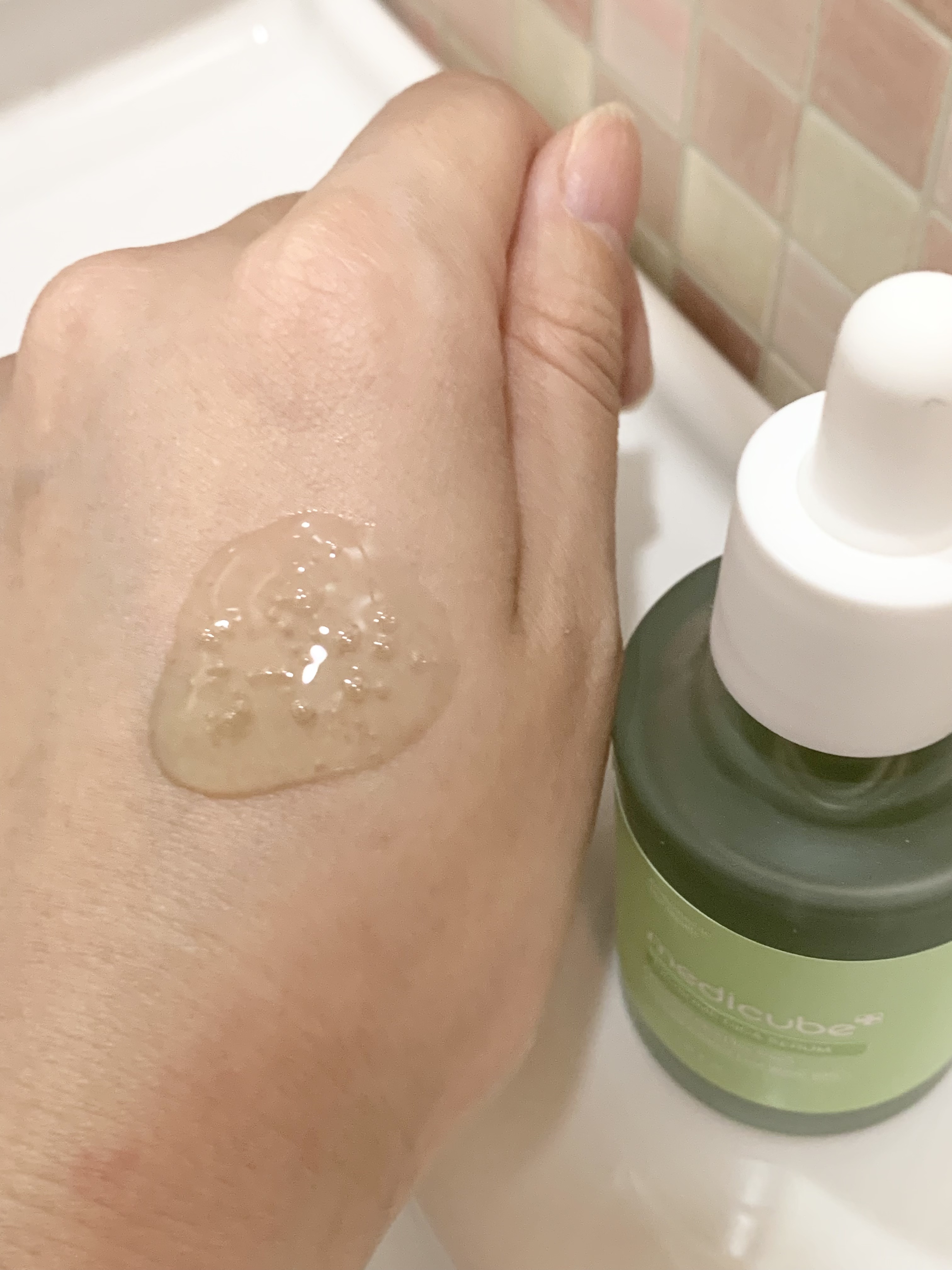 ニキビ鎮静成分84%の高濃縮アンプルです。シカより5.3倍強く急速鎮静とぎっしり水分チャージします。 テクスチャーはとろんとしてジェリーのようです。水分たっぷりなのが肌に乗せた瞬間に分かるほどにプルプルしています。 無着色&香料不使用なのは嬉しい。スポイトで一定量取れるのも好印象です。