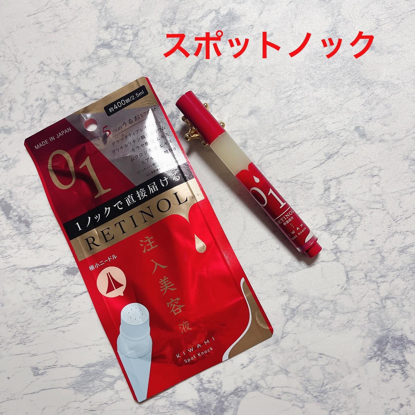 塗るより、貼るより、「直接届ける」新発想✨ 注入型レチノール(保湿成分)で肌の中からアプローチ 200μニードルの極小の針を気になる部分にノックして2秒~3秒待つだけ‼︎というお手軽さ✨ 1本で400ノック使えるとのことでコスパも🙆♀️