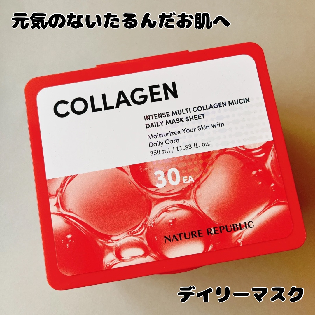ネイチャーリパブリックの人気デイリーシートマスクから、『コラーゲンシートマスク』+相性の良い美容液『ペプチドブースターセラム』の弾力ケアコンビが誕生! 8種類のペプチド成分によりお肌のキメを整え、もっちり弾力のあるお肌へと導くブースターだそう 薄めのシートでぴたっと肌に密着。甘い香り。糸を引くほどとろみのある美容液がひたひたで、サイズ感もちょうど良く、もちもち肌に。