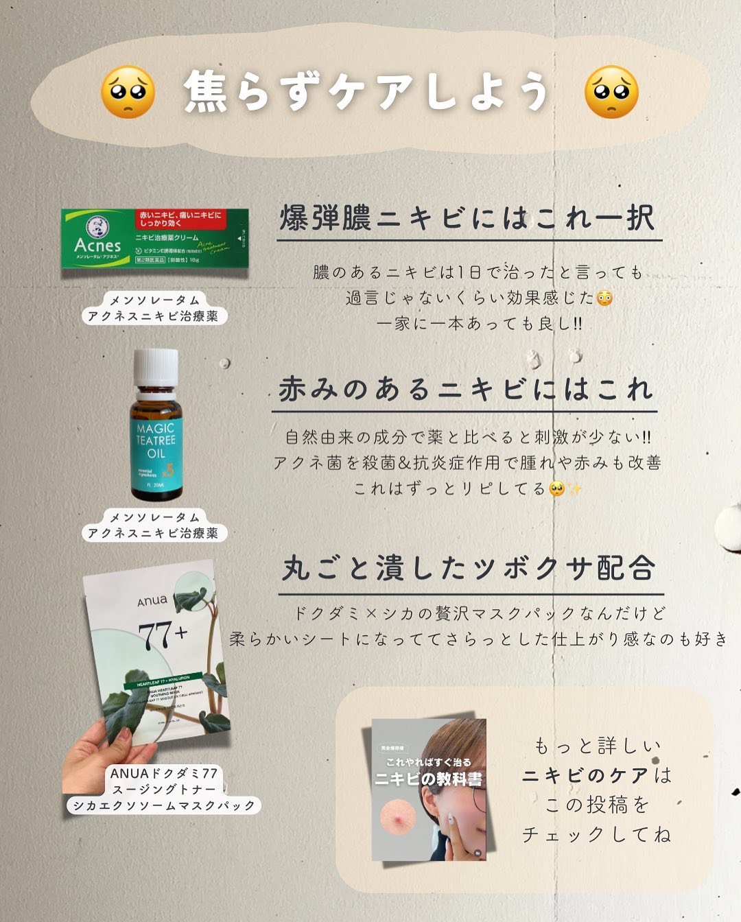 ・白湯です🫶🏻みんなはニキビできた時どうやってケアしてる??白・赤・黄ニキビって種類があって、それぞれできちゃうタイミングあると思うんだけど(白湯は赤・黄ニキビができることが多い🙃)全部【同じ薬】を使ってケアしてない...?もしかしたら、いつ...