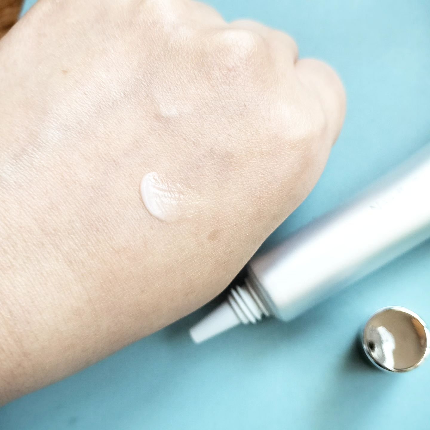 シルバーのチューブに入ってます。キャップを開けて出すタイプでピンポイントでの使用に良いですね。 中身を出してみると見た目は白いクリーム。塗り広げると結構ピリピリ?(なにかが刺さっているような感じ)がします。 マイクロニードルが美容成分を肌の奥(角層)まで届けて浸透して、毛穴の目立ちにくい肌へ導いてくれるそう✨