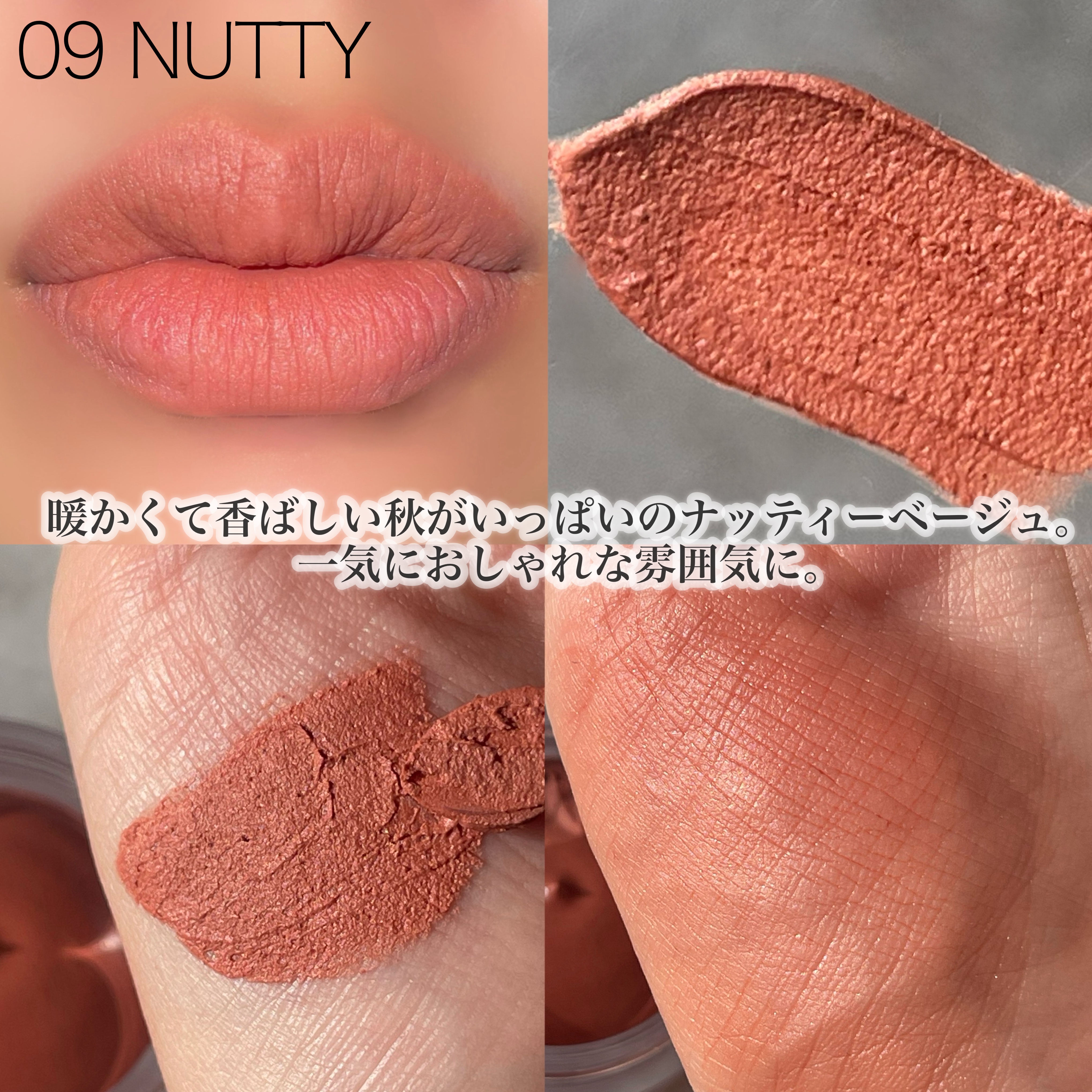- <02 PEAK(ピーク)> ジメチコン、ジメチコンクロスポリマー、シリカ、イソノナン酸イソノニル、パラフィン、合成フルオロフロゴパイト、リンゴ酸ジイソステアリル、酸化チタン、リンゴ種子油、トリイソステアリン酸ポリグリセリル-2、ツバキ種子油、セチルPEG/PPG-10/1ジメチコン、イソステアリン酸ソルビタン、(セバシン酸/イソパルミチン酸)ジグリセリル、(ビニルジメチコン/メチコンシルセスキオキサン)クロスポリマー、ポリヒドロキシステアリン酸、マイクロクリスタリンワックス、ジステアルジモニウムヘクトライト、レシチン、ジイソステアリン酸ポリグリセリル-2、パルミチン酸エチルヘキシル、ミリスチン酸イソプロピル、イソステアリン酸、ポリリシノレイン酸ポリグリセリル-3、クエン酸トリエチル、(ラズベリー種子油/コハク酸トコフェロール)アミノプロパンジオールエステルズ、トコフェロール、ブドウ種子油、BG、水、グリセリン、シロバナワタ種子エキス、香料、酸化鉄、赤202、黄4、赤227、赤201 <03 MUVE(ミューブ)> ジメチコン、ジメチコンクロスポリマー、シリカ、パラフィン、合成フルオロフロゴパイト、リンゴ酸ジイソステアリル、酸化チタン、イソノナン酸イソノニル、リンゴ種子油、トリイソステアリン酸ポリグリセリル-2、ツバキ種子油、セチルPEG/PPG-10/1ジメチコン、イソステアリン酸ソルビタン、(セバシン酸/イソパルミチン酸)ジグリセリル、(ビニルジメチコン/メチコンシルセスキオキサン)クロスポリマー、ポリヒドロキシステアリン酸、マイクロクリスタリンワックス、ジステアルジモニウムヘクトライト、レシチン、ジイソステアリン酸ポリグリセリル-2、パルミチン酸エチルヘキシル、ミリスチン酸イソプロピル、イソステアリン酸、ポリリシノレイン酸ポリグリセリル-3、クエン酸トリエチル、(ラズベリー種子油/コハク酸トコフェロール)アミノプロパンジオールエステルズ、トコフェロール、ブドウ種子油、BG、水、グリセリン、シロバナワタ種子エキス、香料、酸化鉄、黄4、赤202、青1、赤201 <05 LESSENING(レスニング)> ジメチコン、ジメチコンクロスポリマー、シリカ、リンゴ酸ジイソステアリル、酸化チタン、パラフィン、合成フルオロフロゴパイト、リンゴ種子油、トリイソステアリン酸ポリグリセリル-2、イソノナン酸イソノニル、ツバキ種子油、セチルPEG/PPG-10/1ジメチコン、イソステアリン酸ソルビタン、(セバシン酸/イソパルミチン酸)ジグリセリル、(ビニルジメチコン/メチコンシルセスキオキサン)クロスポリマー、ポリヒドロキシステアリン酸、マイクロクリスタリンワックス、ジステアルジモニウムヘクトライト、レシチン、パルミチン酸エチルヘキシル、ミリスチン酸イソプロピル、イソステアリン酸、ポリリシノレイン酸ポリグリセリル-3、クエン酸トリエチル、ジイソステアリン酸ポリグリセリル-2、(ラズベリー種子油/コハク酸トコフェロール)アミノプロパンジオールエステルズ、トコフェロール、ブドウ種子油、BG、水、グリセリン、シロバナワタ種子エキス、香料、酸化鉄、赤227、黄4、赤202 <07 HEARTY(ハーティ)> ジメチコン、ジメチコンクロスポリマー、シリカ、パラフィン、イソノナン酸イソノニル、合成フルオロフロゴパイト、リンゴ酸ジイソステアリル、酸化チタン、リンゴ種子油、トリイソステアリン酸ポリグリセリル-2、ツバキ種子油、セチルPEG/PPG-10/1ジメチコン、イソステアリン酸ソルビタン、(セバシン酸/イソパルミチン酸)ジグリセリル、(ビニルジメチコン/メチコンシルセスキオキサン)クロスポリマー、ポリヒドロキシステアリン酸、マイクロクリスタリンワックス、ジステアルジモニウムヘクトライト、レシチン、ジイソステアリン酸ポリグリセリル-2、パルミチン酸エチルヘキシル、ミリスチン酸イソプロピル、イソステアリン酸、ポリリシノレイン酸ポリグリセリル-3、クエン酸トリエチル、(ラズベリー種子油/コハク酸トコフェロール)アミノプロパンジオールエステルズ、トコフェロール、ブドウ種子油、BG、水、グリセリン、シロバナワタ種子エキス、香料、黄5、酸化鉄、赤202、赤201、青1 <10 MELTY(メルティ)> ジメチコン、ジメチコンクロスポリマー、シリカ、リンゴ酸ジイソステアリル、酸化チタン、パラフィン、合成フルオロフロゴパイト、リンゴ種子油、トリイソステアリン酸ポリグリセリル-2、ツバキ種子油、セチルPEG/PPG-10/1ジメチコン、イソステアリン酸ソルビタン、(セバシン酸/イソパルミチン酸)ジグリセリル、イソノナン酸イソノニル、(ビニルジメチコン/メチコンシルセスキオキサン)クロスポリマー、ポリヒドロキシステアリン酸、マイクロクリスタリンワックス、ジステアルジモニウムヘクトライト、レシチン、パルミチン酸エチルヘキシル、ミリスチン酸イソプロピル、イソステアリン酸、ジイソステアリン酸ポリグリセリル-2、ポリリシノレイン酸ポリグリセリル-3、クエン酸トリエチル、(ラズベリー種子油/コハク酸トコフ