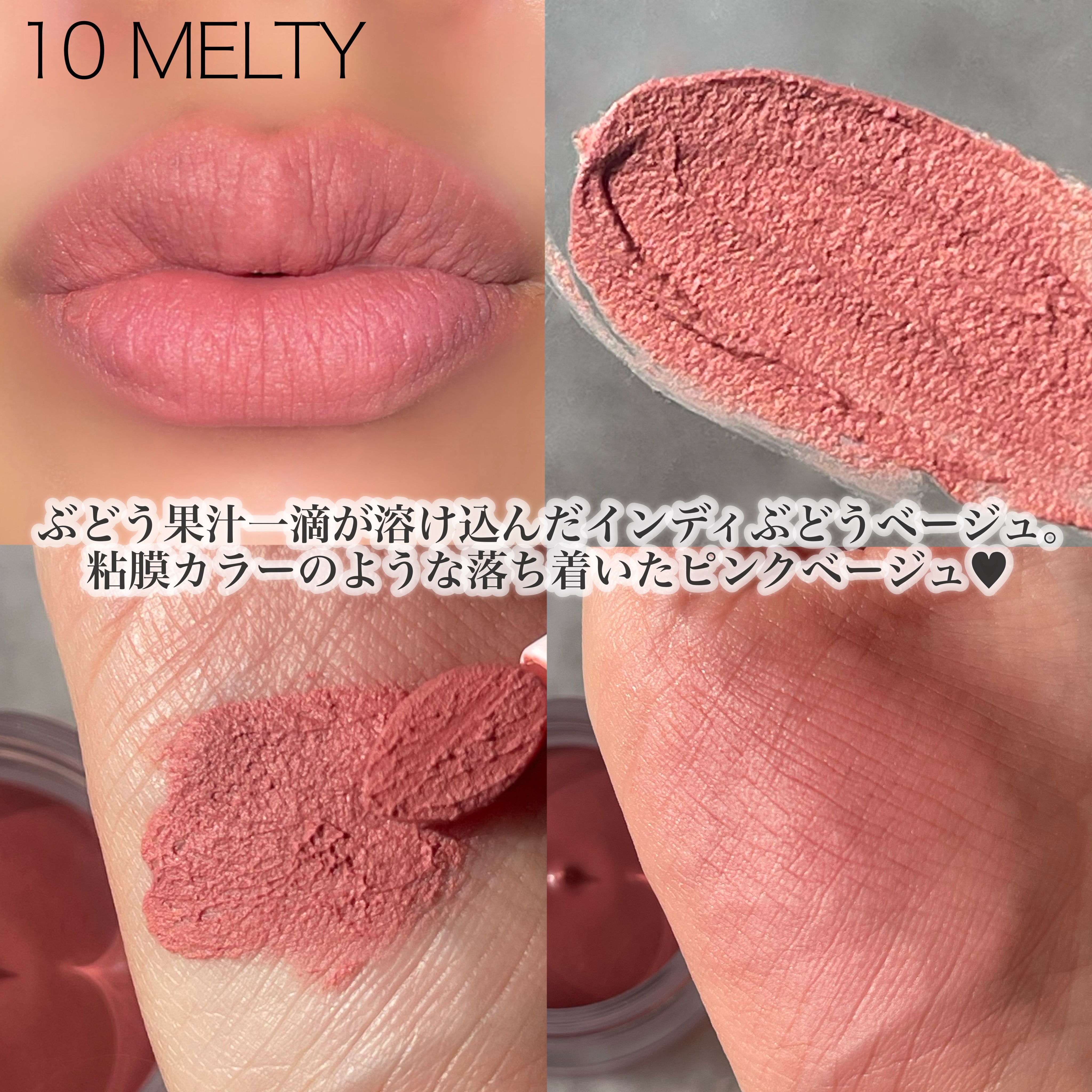 唇にさらりと溶け込んでふんわりとしたリップを完成させる、「メルティングブラーリップポット」より待望の新色が仲間入りしました🥹💖 メルティングブラーテクスチャーで、まさにふわっふわのスフレみたいな質感💓 なめらかにスルスル〜っと塗れるので、量も調節しやすいのが嬉しい🙌🏻❣️ 流行のポットタイプのパッケージで、中の色味がわかりやすいデザインも可愛い🌷 メガ割の20%クーポンも対象なので、気になる方はぜひチェックしてみてください🙆🏻♀️💫