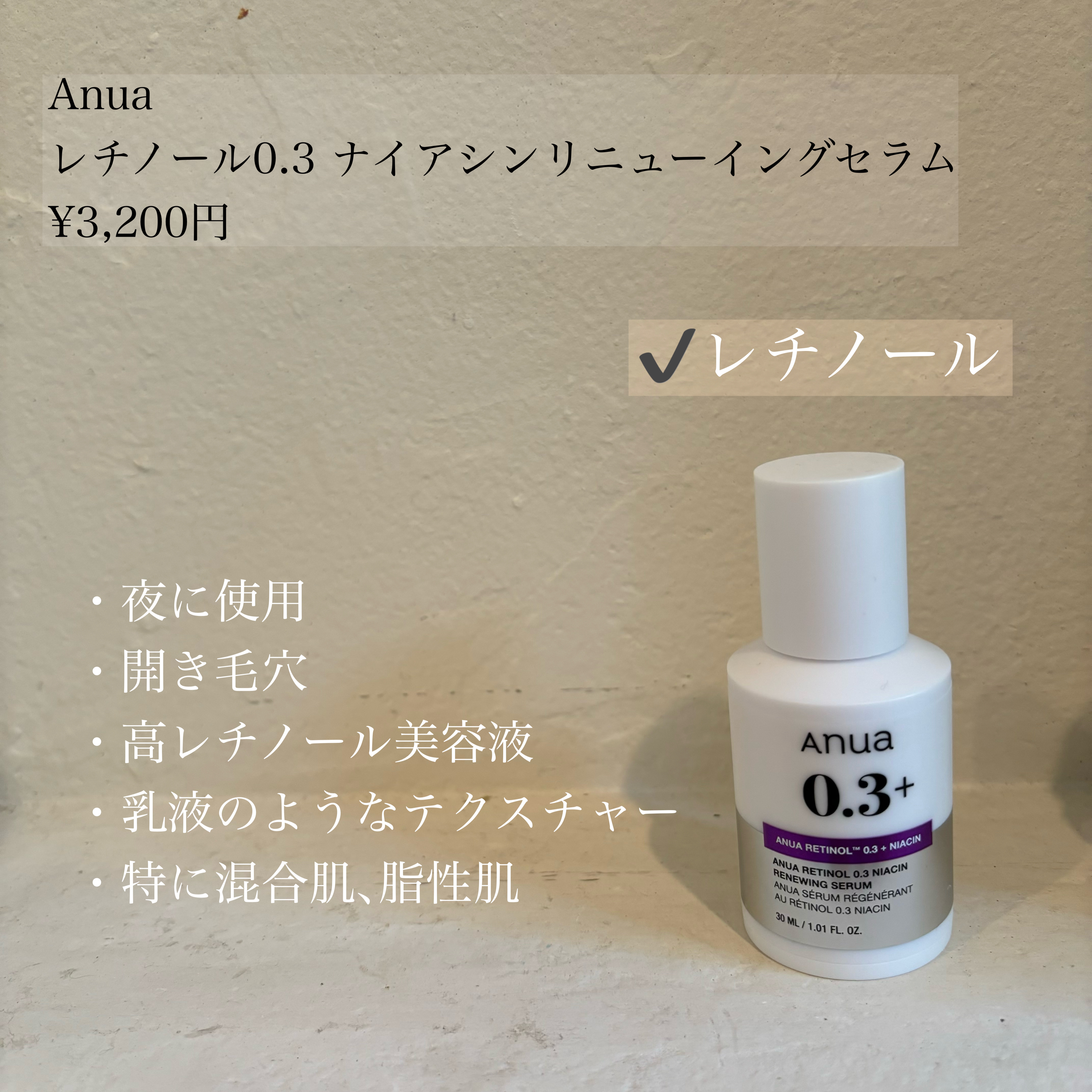 Anua レチノール0.3 ナイアシンリニューイングセラム | 3,200円 |