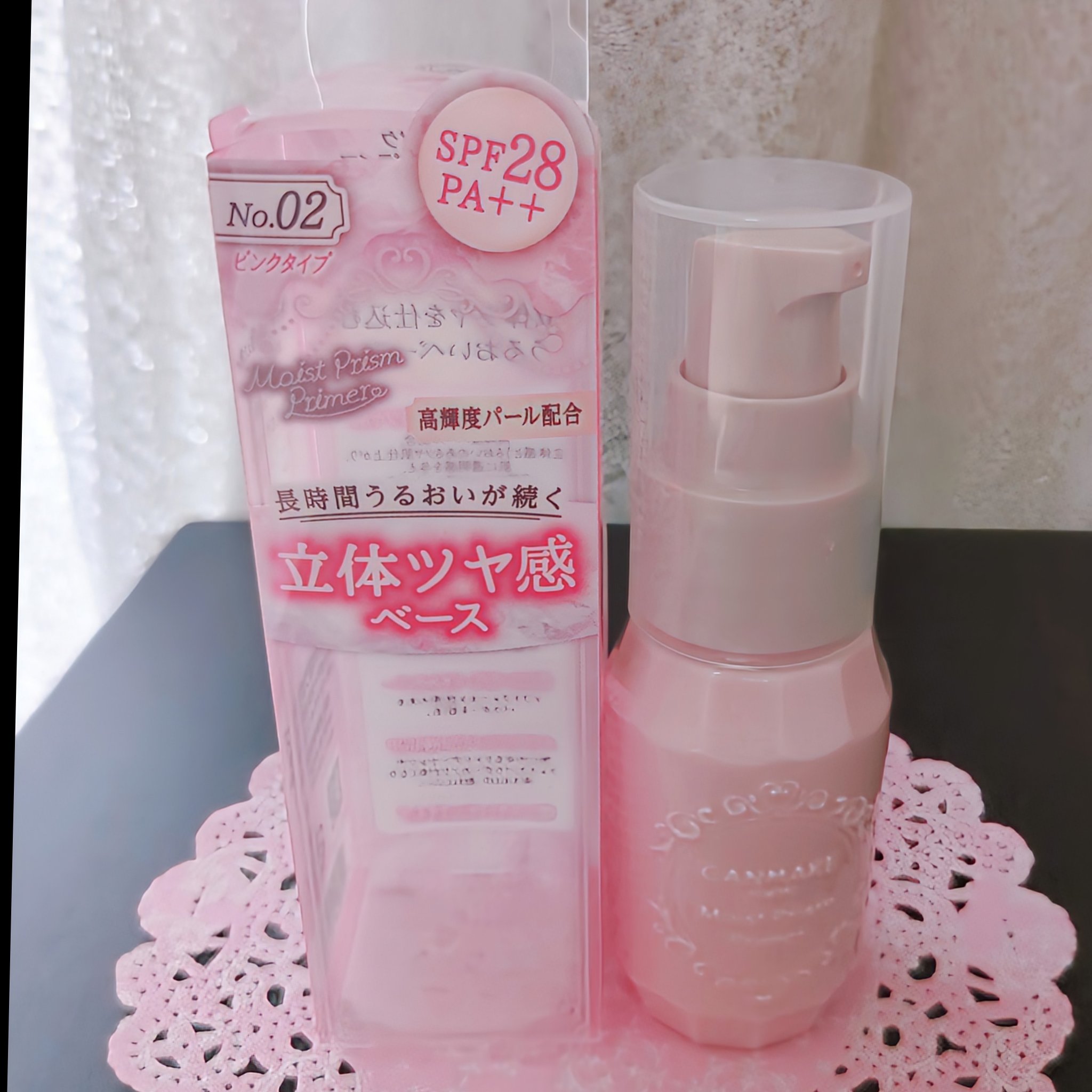 - 透明感のあるもっちりツヤ肌♪ 長時間うるおいが続く立体ツヤ感ベース 高輝度パール配合で、立体感とうるおいのあるツヤ肌仕上がり。 肌に透明感を与え、自然にトーンアップします。 水分を多く含んだような、わざとらしさのないツヤ感を演出✨ 美容液のようなみずみずしいテクスチャーで伸びが良く、 簡単にムラなく塗ることができます。 ツヤを出しつつもベタつきにくい仕上がり♪ つけている間スキンケア感覚で、長時間乾燥しにくい! 17種類の美容保湿成分配合。 使いやすいポンプタイプ♪