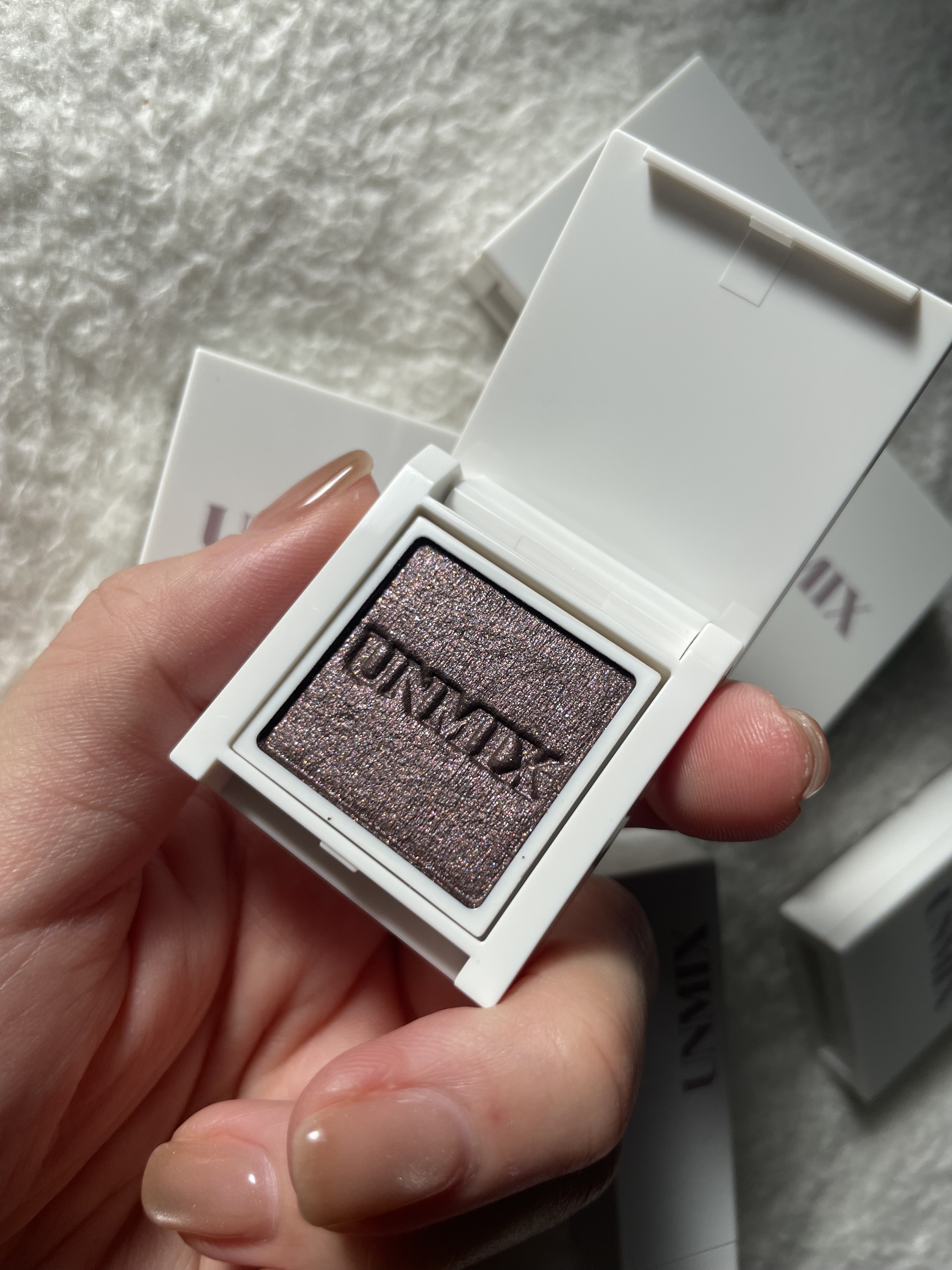 透け発色の紫シャドウ■UNMIXアンミックスアイリッドニュアンス06ラムレーズン買ったばかりのアンミックスのアイシャドウ。4色あるのですがこの色が一番気に入ってます!見た目はラムレーズンって感じの深みのある紫。紫なんだけど、ちょっと茶色っぽく...