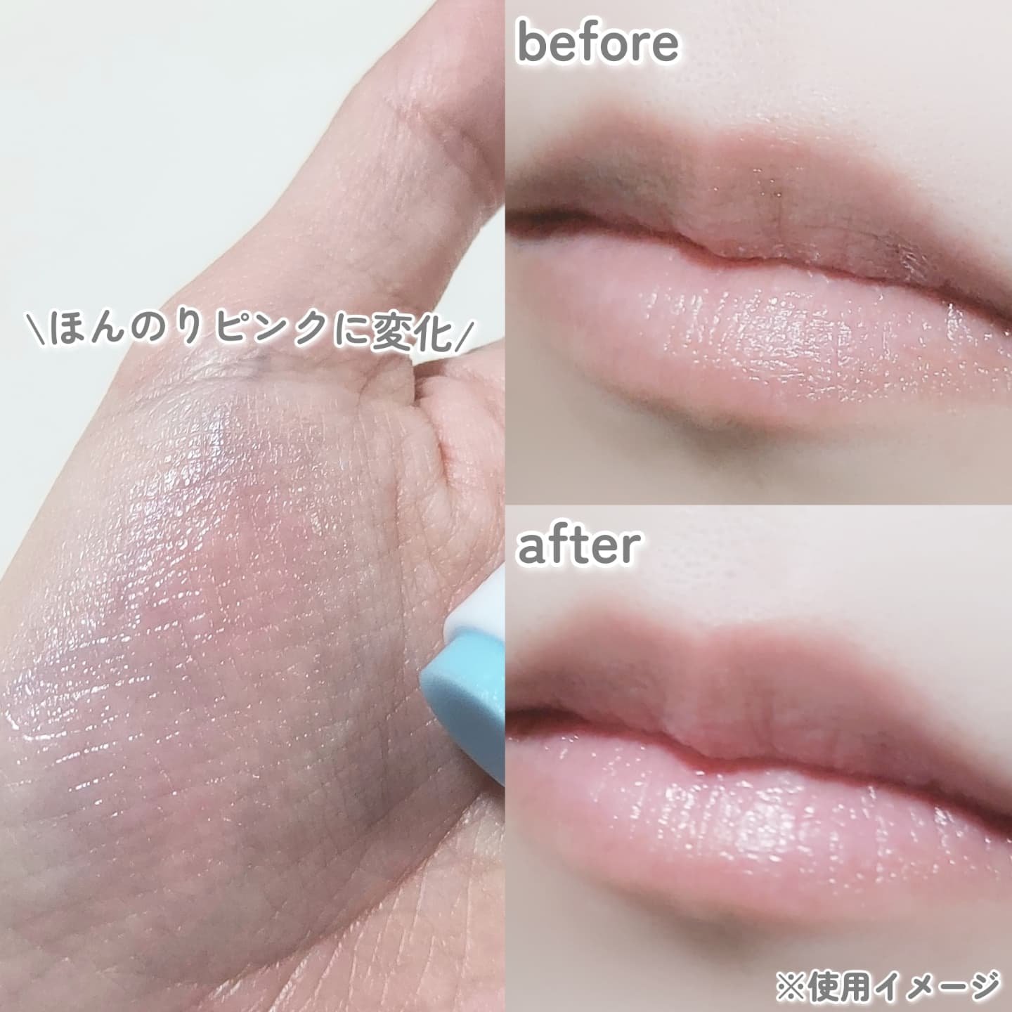 さおりんさんのイメージカラーのブルーなので驚きますが、塗った瞬間に唇のに合わせてブルーカラーがピンクに変化して、くすんだ唇にナチュラルな血色感*とうるおいを与えてくれる、素敵な仕掛けのあるリップバームです。 これからの季節、唇が乾燥しやすいのでこまめに塗っていきたいです!