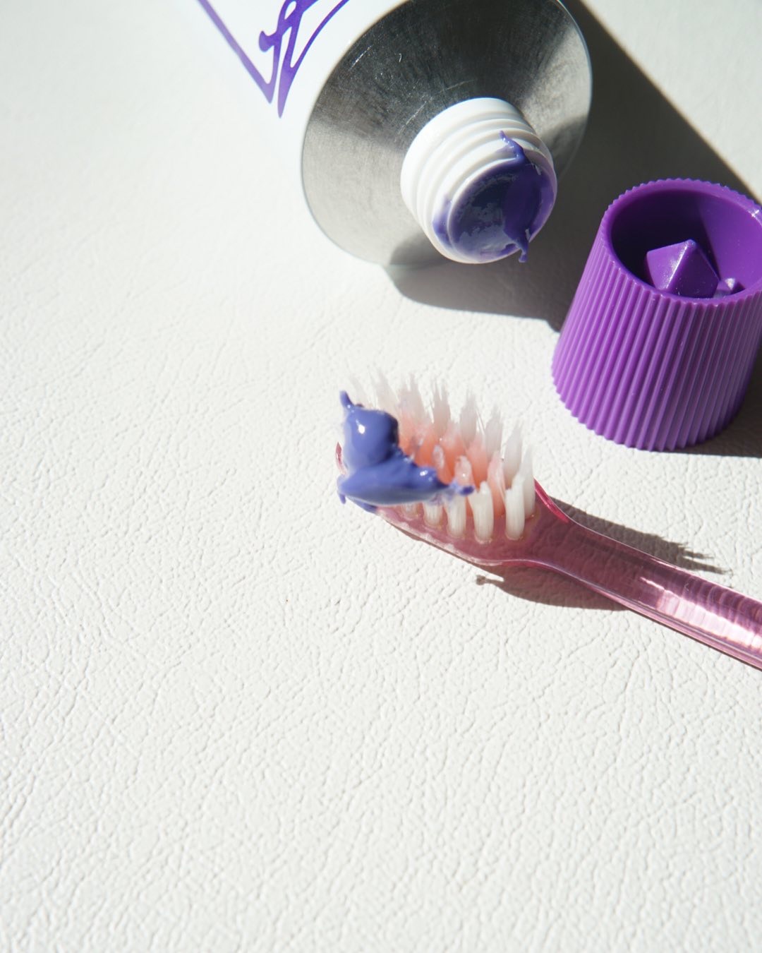 紫の歯磨き粉💜 歯の美白効果により、一回の使用で驚くほどの白さを実感 特殊なフォーミュラで歯を保護し、健康的な口腔環境を促進🏃♀️ コラーゲン、スクアレン、アデノシン、ナイアシンアミドなどの成分が配合されてて弾力ケアや保湿、シワケア、皮脂調節の働きがある! スルスルかけて描きやすい✍🏻 後ろはブラシ付きだから好きな感じにぼかせるよ❤️🔥