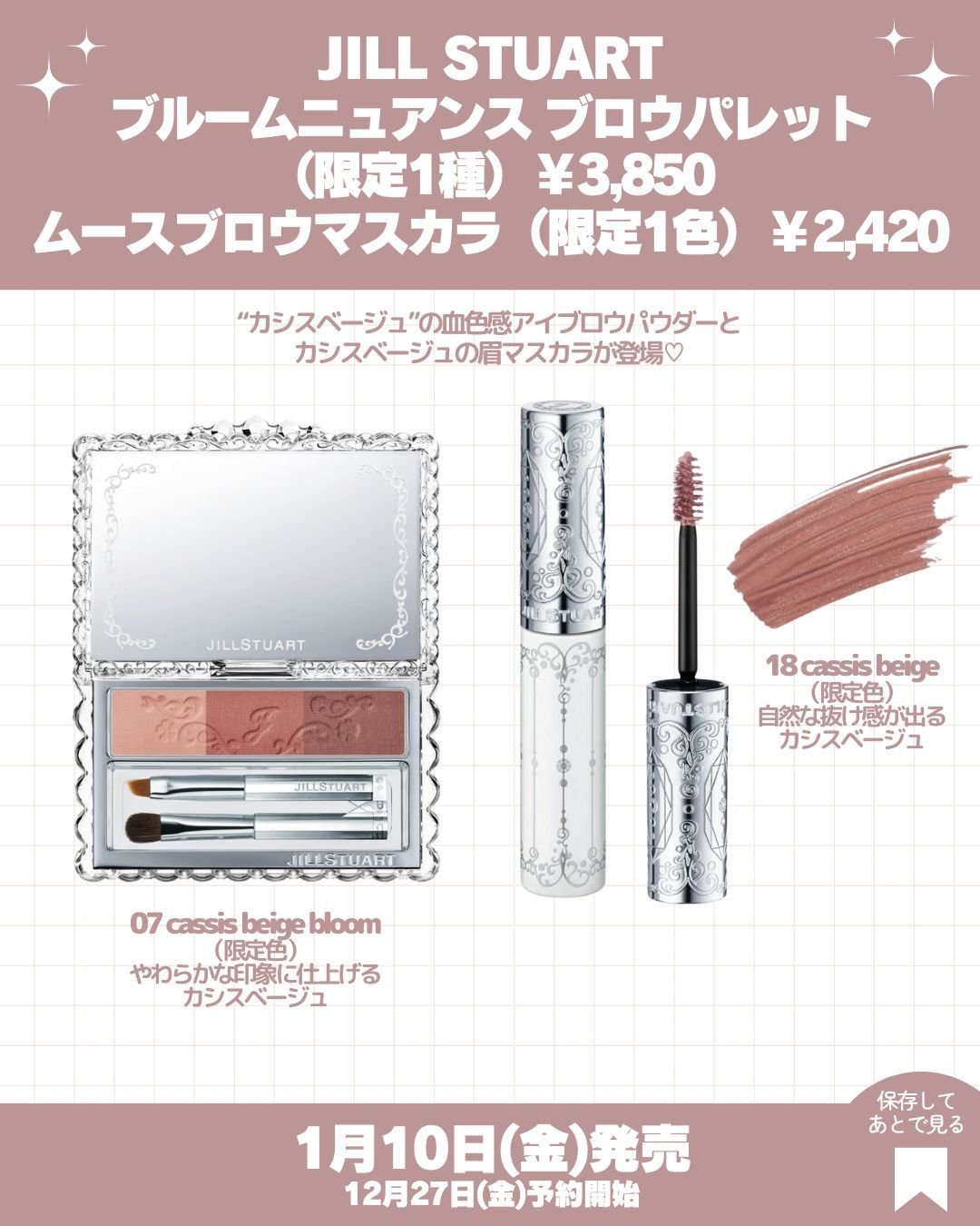 やわらかな印象に仕上げるカシスベージュ ジルらしい可愛いお色で春を先取りできちゃいます! アイブロウパウダーはぴたっと密着してくれるので色もち◎ 付属のブラシは折り畳みになっており伸ばせるので便利です!😊