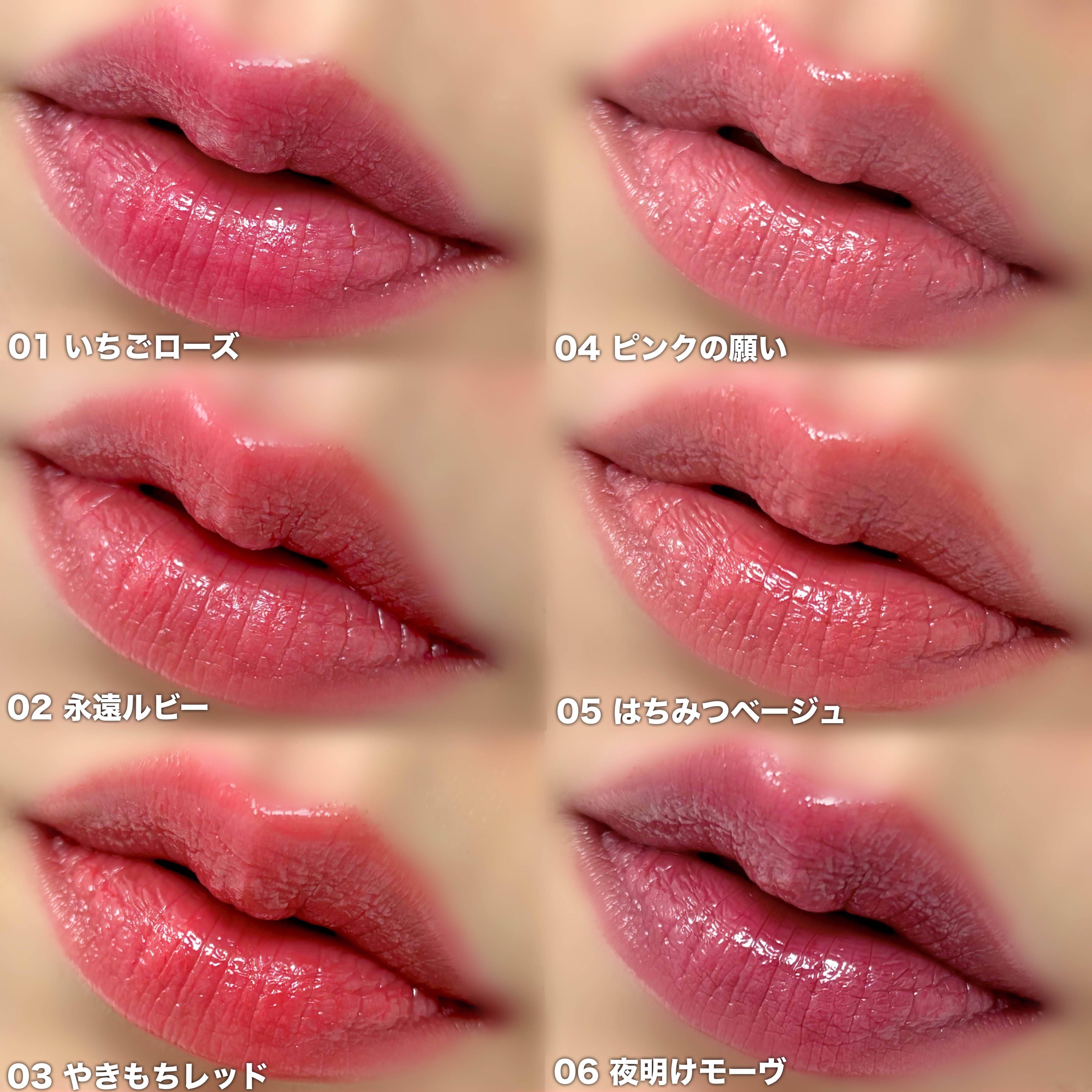 - ・じゅわっと透明感*¹ ある美発色 ティントでありながらも自然なリップカラーを演出。 見たまま美発色で唇を彩り、グロウなテクスチャーでありながらカラーフィクシングが可能。 ・ひと塗りでボリューム感*¹ と、とろける光沢感を演出 独自成分*² により反射光を効果的に演出し、唇の皺を見えにくくする。 また、モイスチャー感と光沢感もキープし、生ツヤっぽい光沢感を演出。 ・クリアなレイヤリングカラー 厚みのない、塗れば塗るほどきれいな発色。 ヌーディ系のライトとミュートカラー展開。 *¹ メイクアップ効果 *² アルミナ成分