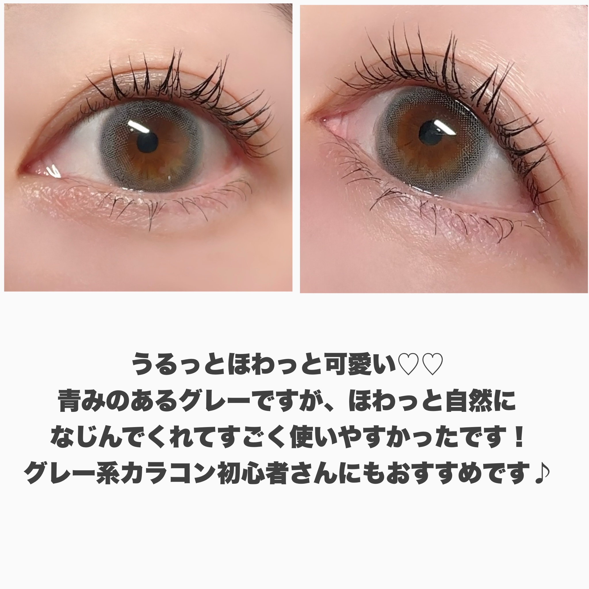 ほんのり甘い残り香のような儚さ ◾︎ Gray Note ひんやり淡いグレーに、温かいミルクのような白を一滴混ぜたような儚げグレー 粉雪のような淡いパウダーフチで瞳になじみやすく ナチュラルグラデがふんわり甘い瞳を演出🤍 ほわっとしたフチに着色直径も13.4mmだから大人でも使いやすい👀