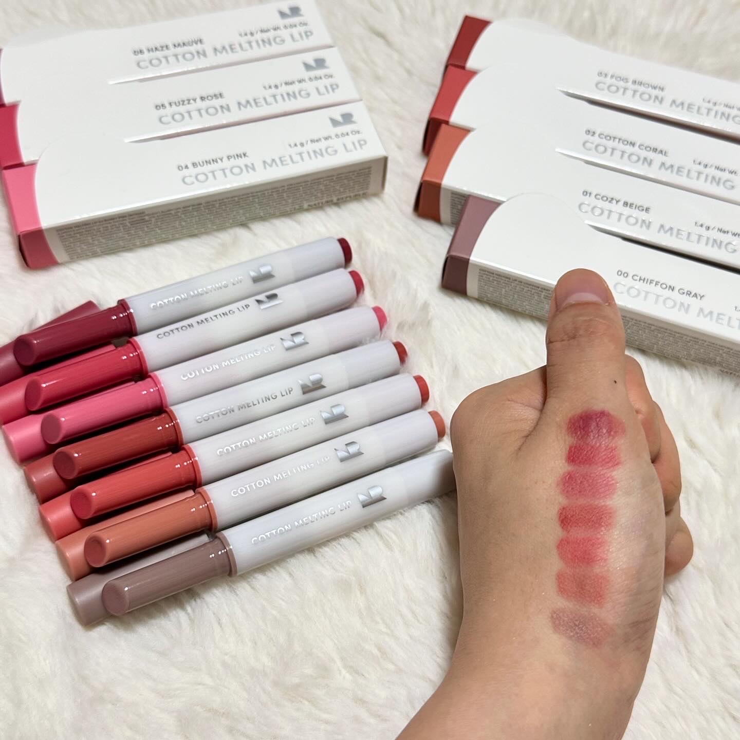 - ふんわりマシュマロ唇が作れちゃう「コットンメルティングリップ」が登場! シアバターと8種のヒアルロン酸配合で、マットリップなのに軽やかにうるおう新概念リップです。 イエベ・ブルべ問わず肌馴染みのいい7色展開で、いずれも落ち着いたミュートカラーが特徴。唇の質感をふんわりとぼかしながらマシュマロのような唇を演出します。 さらにチークやアイシャドウ、シェーディングにも使えるマルチユース。 1本ポーチに忍ばせればメイク直しも簡単です。