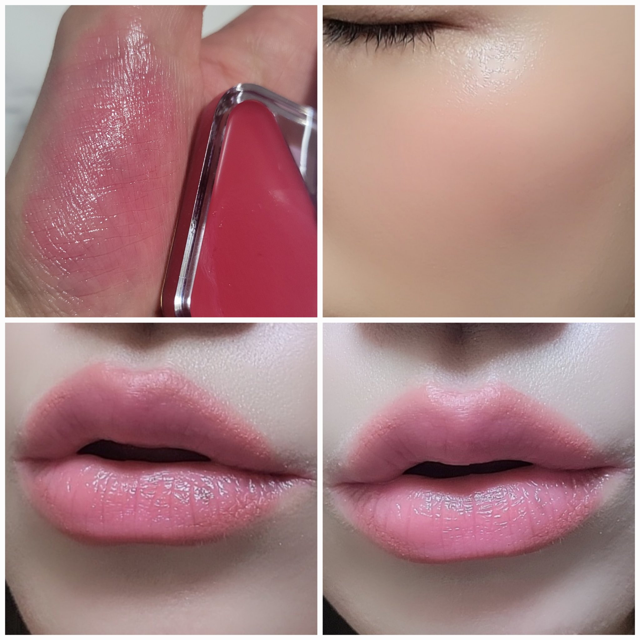 リップ&チークはじゅわっと発色が可愛いチェリーカラー🍒 05は唇に乗せた時も思ってたよりしっかり発色してくれた!! バームタイプだからしっとりツヤ感のある仕上がり✨✨ アイシャドウは迷うことのない3色パレット! 自然な艶感が出る上品な仕上がりだよ🤍🫧