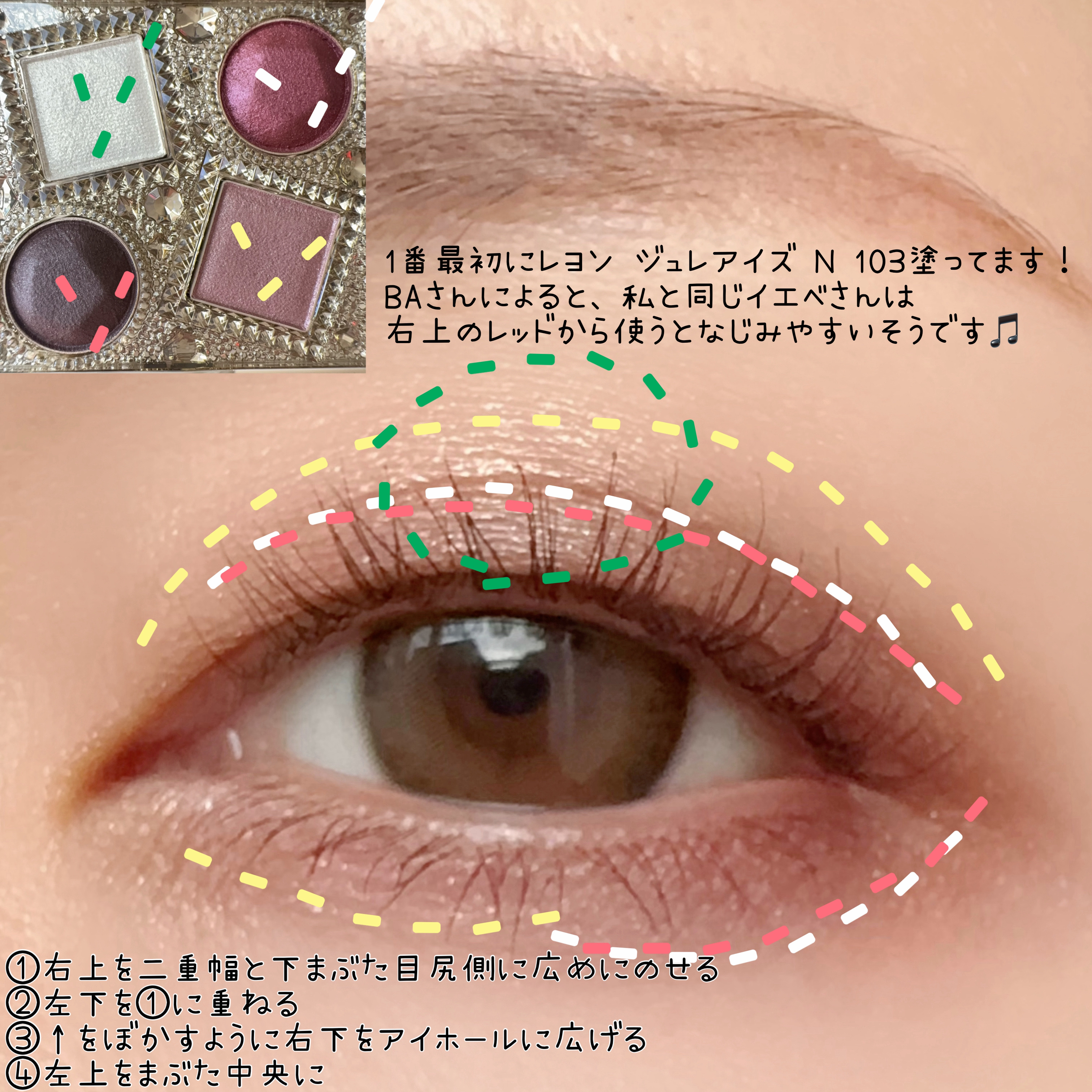 意外と見た目より使いやすくてびっくり! たぶん2ndがブルベ冬のイエベさんなら使えるかと思います…! 購入時お話したBAさんにオススメされたのは、下段の左、薄いピンクをアイホール全体にまず塗ってから、その隣のラベンダーを塗ると馴染みがよくなるのでオススメとのことです✨ パープルの使い方はBAさんに教えて頂いた方法です(`・ω・´)✨ かなり悩んだのですがほんと購入してよかった…!