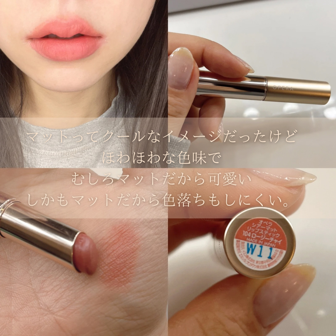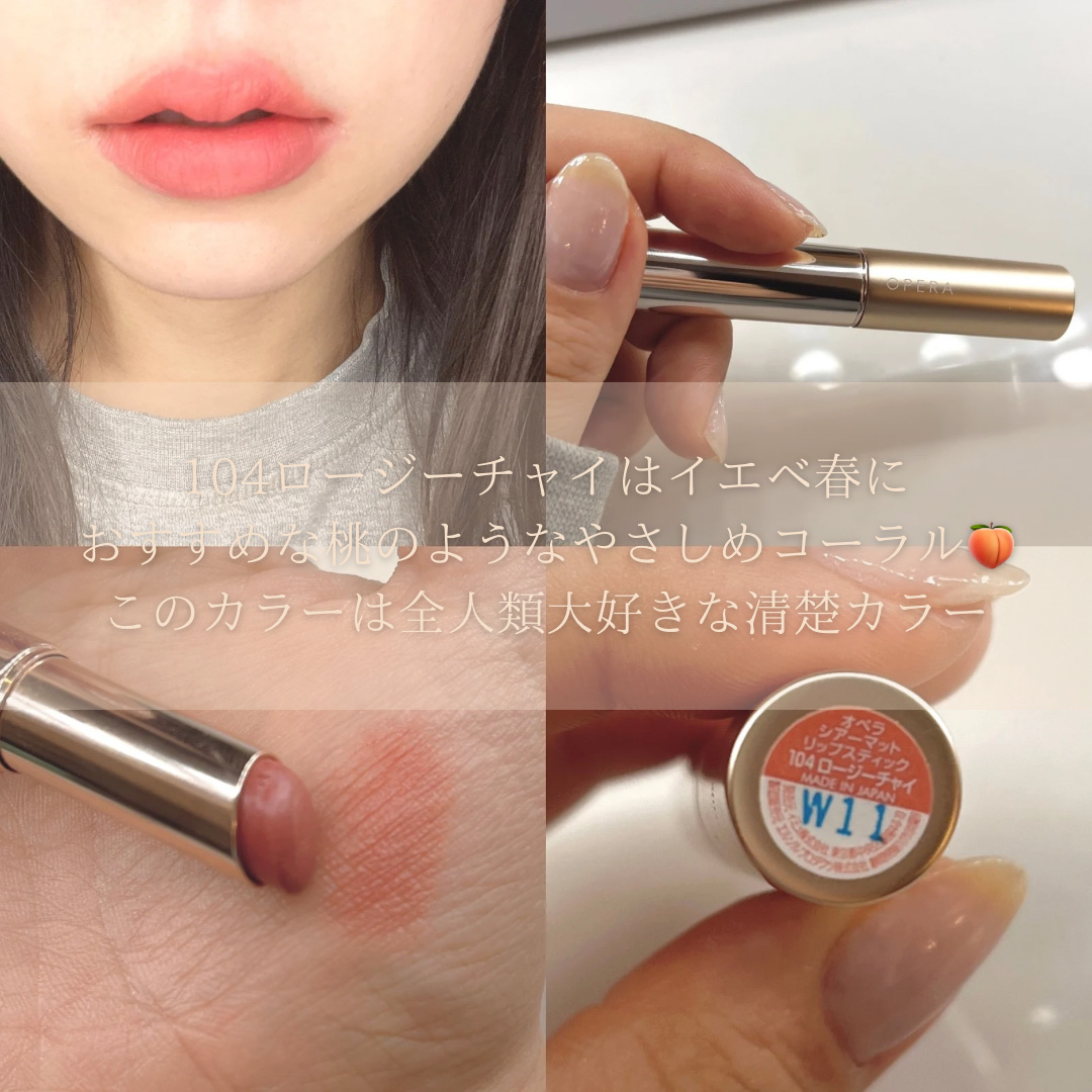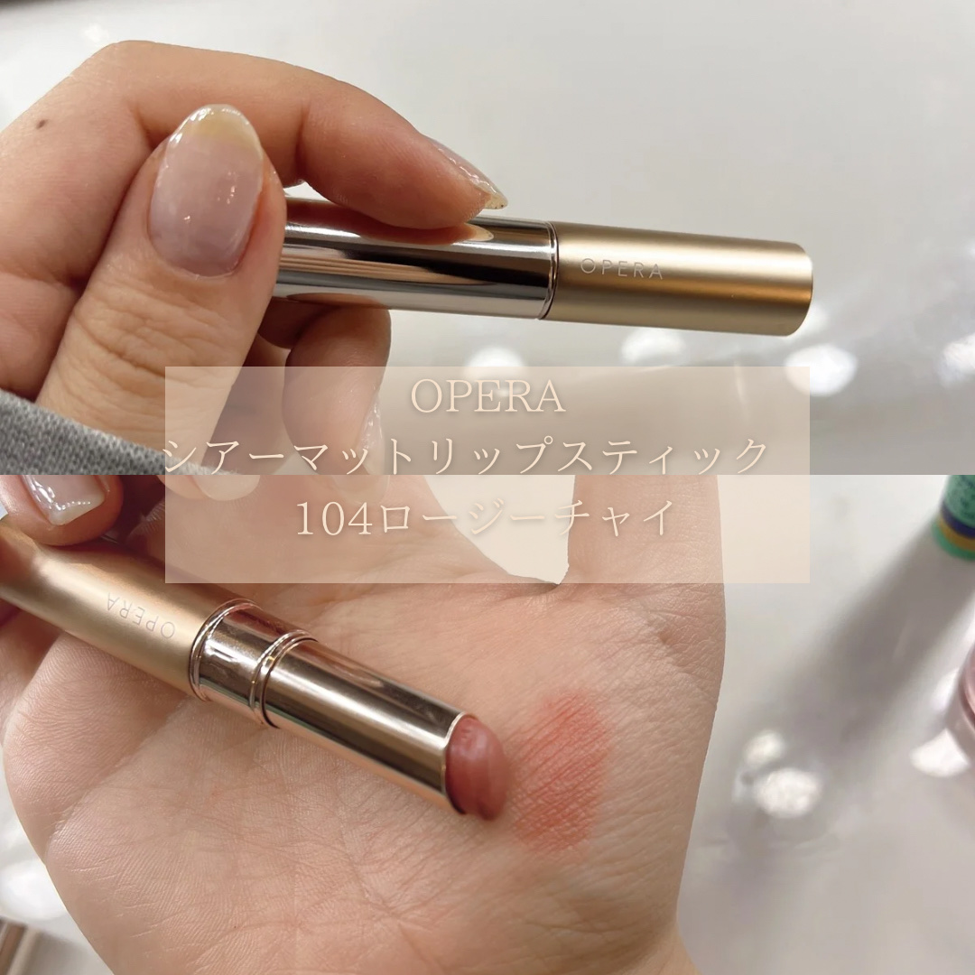 久しぶりにオペラのリップを買ってみました🤗 103はブルベ夏冬、104はイエベ春向けカラー🩷 今流行りのミュートカラー💄 普段使いにピッタリです✨ 私はミスティプラムのが好きです❤️ 粘膜感ありつつも発色もそこそこ良くこのバランスが絶妙です💓色持ちもまずまずでした。