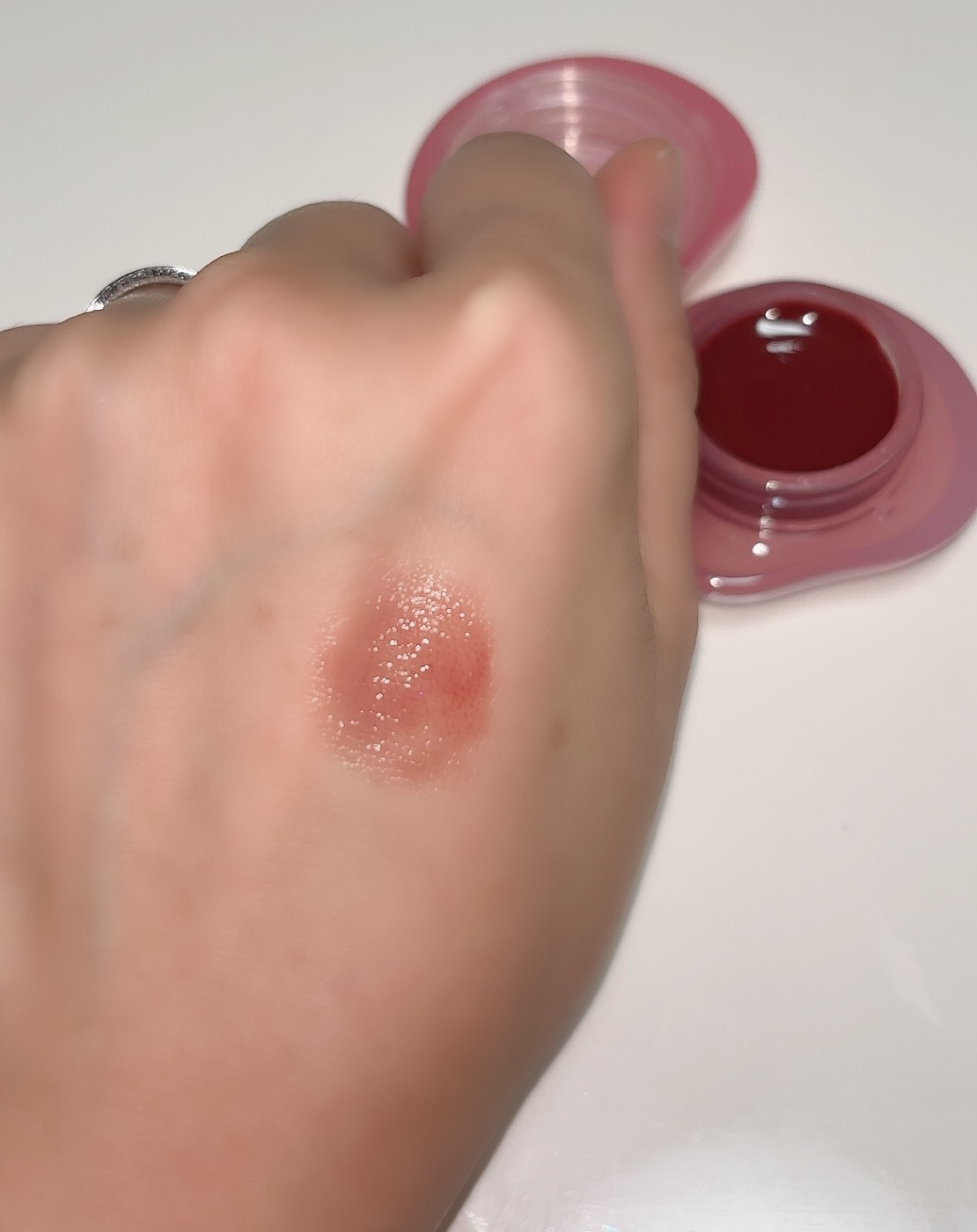 ぷにぷにジェリーの形状記憶テクスチャなので、つかっても時間が経つと元通り。 コロンとハート型のピンクのケースがとにかく可愛すぎる。 ツヤツヤ透明感のある絶妙仕上がり!ティッシュオフするとややマットにキレイに発色。